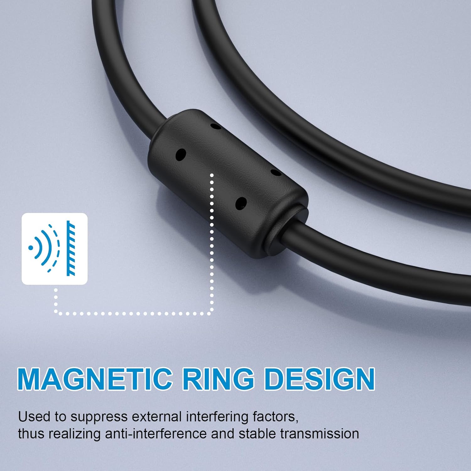 Aluminum foil and braided layer shielding can reduce EMI/RFI interference. Twisted pair structure can ensure high-speed, error-free data transmission. Data transfer rate up to 480Mbps.