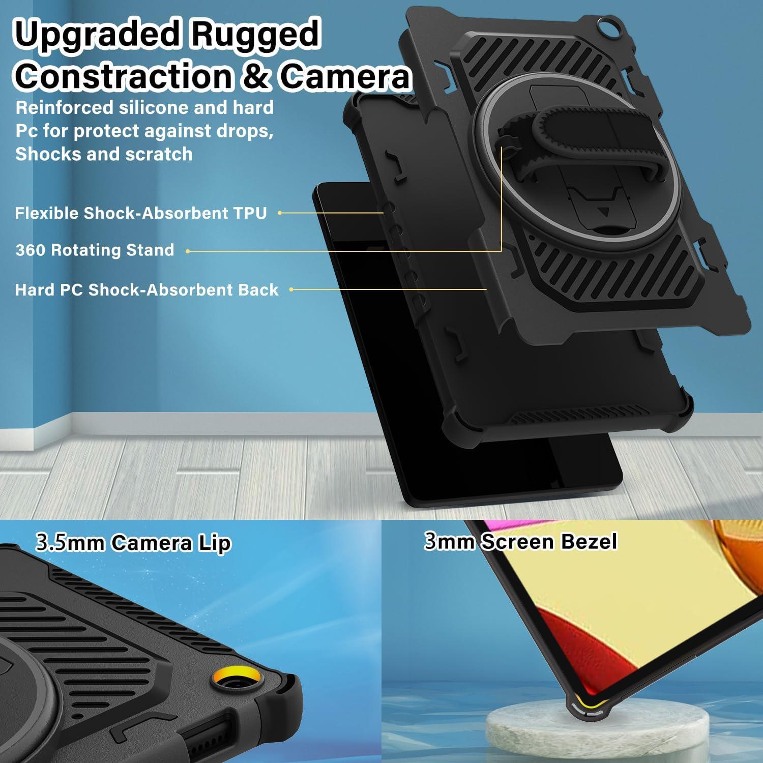 Lightweight & Durable & Sturdy & Dual Layer Drop Resistant Design: Solid dual layer case all around your tablet offer 360 Degree Full-Body Fall Protection; shock-absorbing TPU inner shell + Hard PC back outer case against accidental drop,bumps, and shock