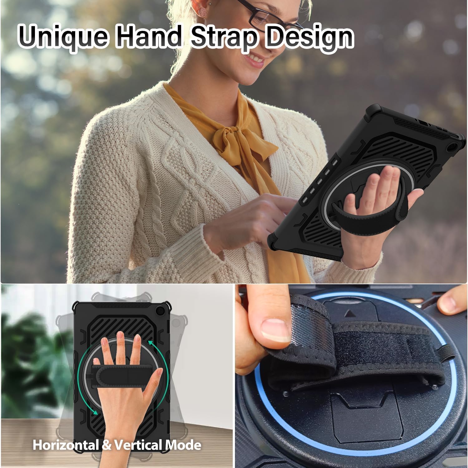 ROISKIN 360 Rotating Kickstand Hand Strap Case for 2023 Release Tablet Fire Max 11 Case 13th Generation for Kids,Also for iPhone Nokia Sony 11in