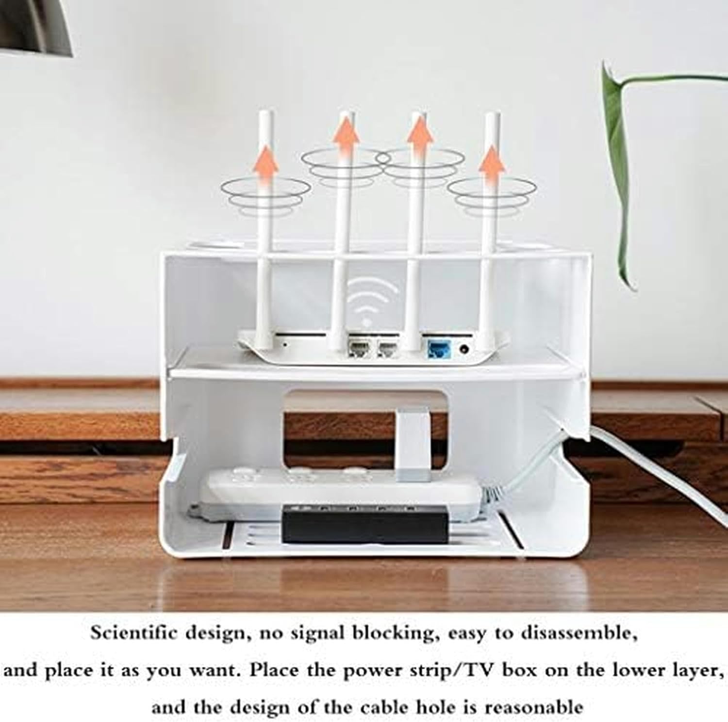 Router Storage Box,Router Storage Box WiFi Router Bracket Set-top Box 2 Tiers Set-top Box Supports Home and Office WiFi Router Adjustable Cable Box Stands (Color : White, Size : 29.2 * 21 * 20.
