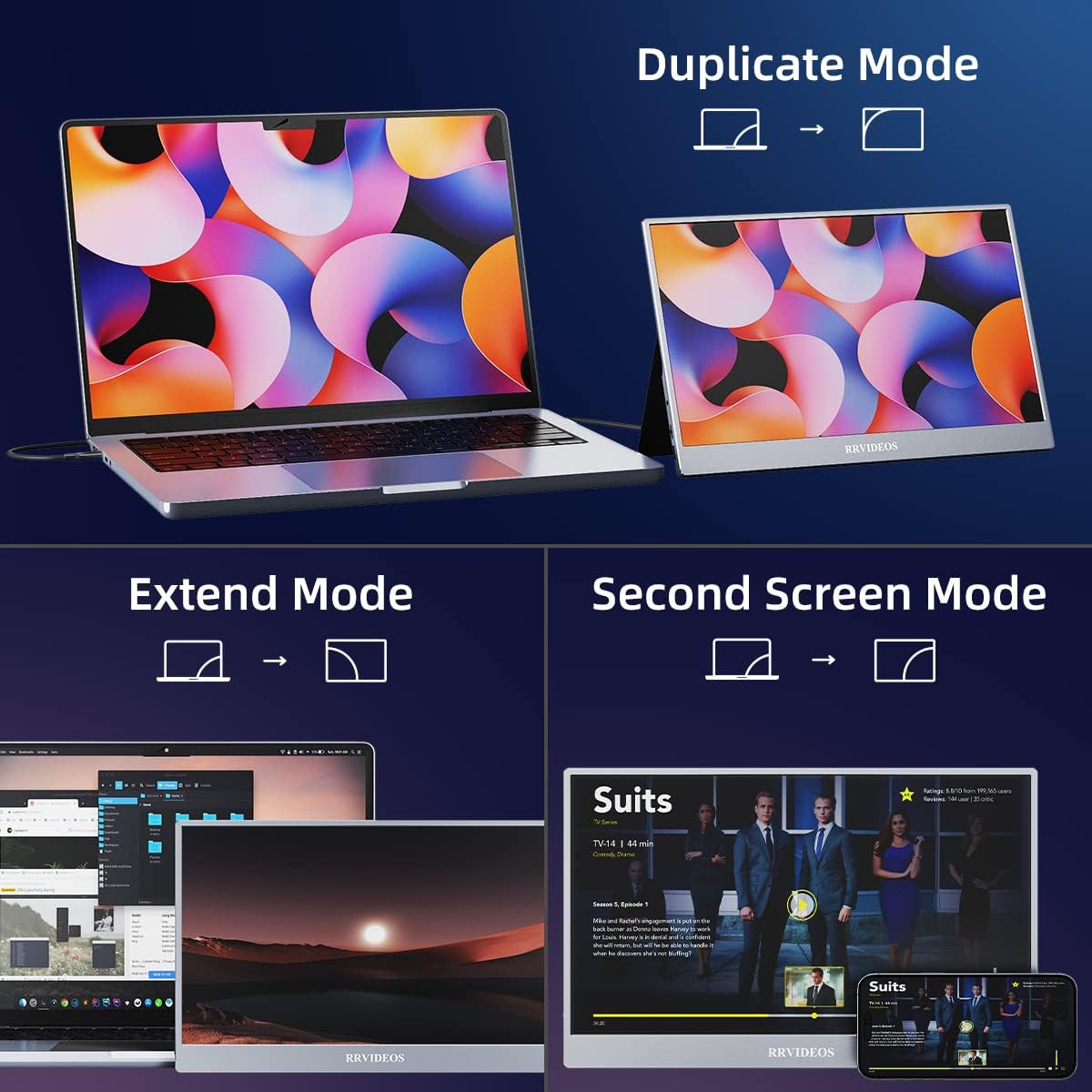 🎮【Wide Compatibility 】: RRVideos portable touchscreen monitor for laptops features 2 USB, Type-C ports, and a Mini-HDMI port, offering easy access to your favorite devices with a single cable solution. It’s compatible with most laptops, smartphones, PCs, PS4, Xbox One, and more. Connect a third data line USB-A to USB-C to unlock the touch function, supporting ten-point touch for an enhanced user experience. It’s a great choice for dual screen monitors or as a second screen monitor option!