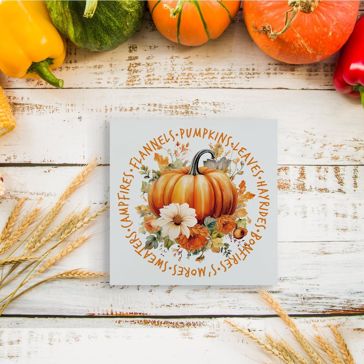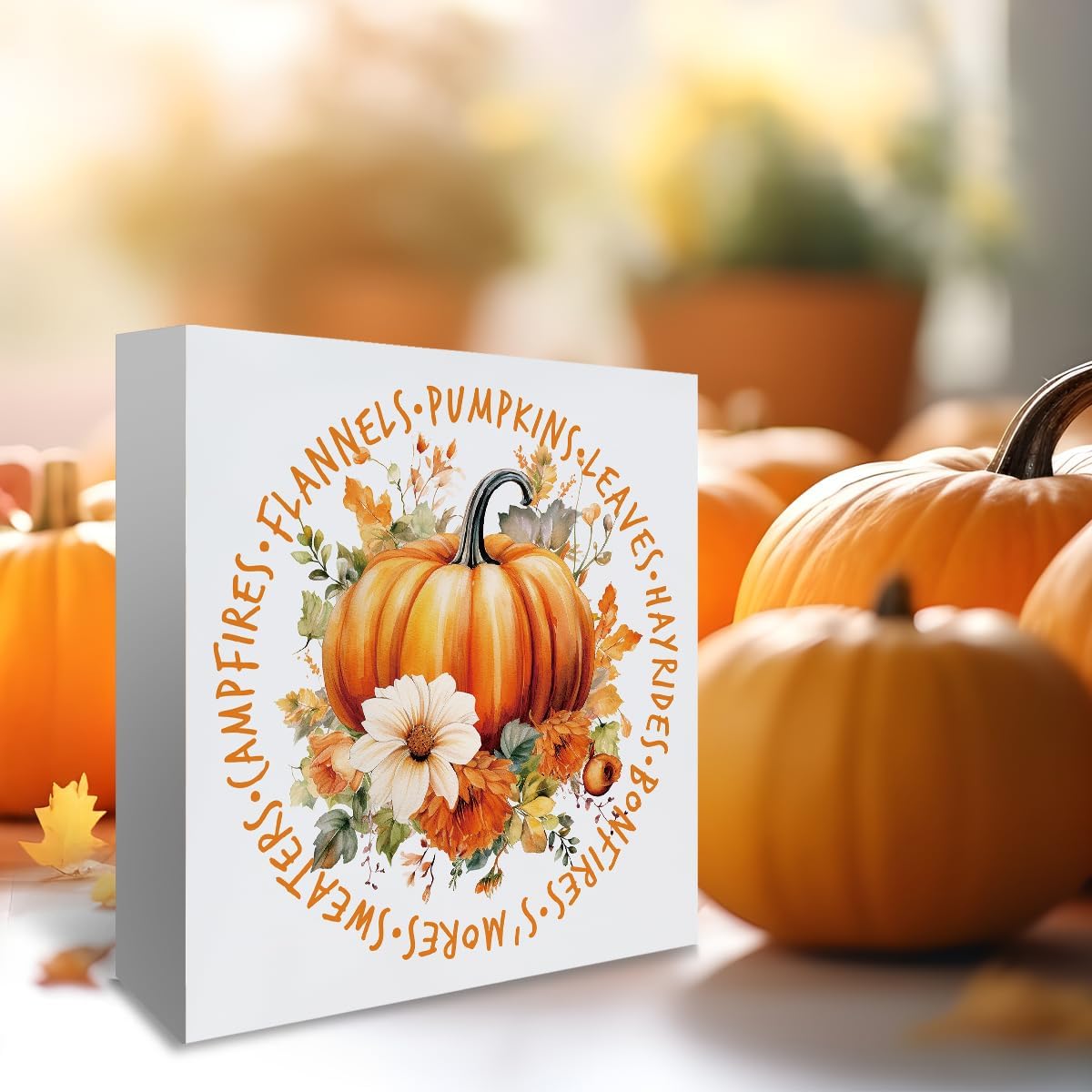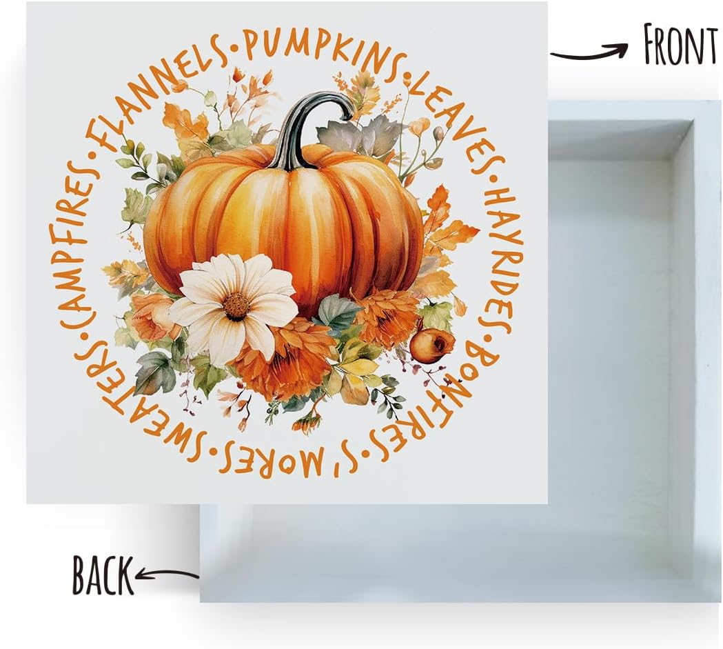 Rustic Fall Decor Wood Box Sign Decor Desk Sign Fall Bucket List with Pumpkin, Farmhouse Fall Wooden Box Mini Tiered Tray Signs for Home Bedroom Office Kitchen Decorations 5 x 5 Inches