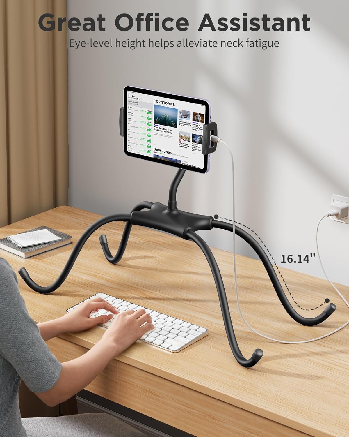 [Durable, Flexible & Stable] This phone holder is made of ABS and PVC materials, which provide higher product strength, greater flexibility, and a longer lifespan. The bottom of the holder features a design with four support rods, ensuring enhanced stability. You can freely tap the device screen during use without experiencing any shaking.