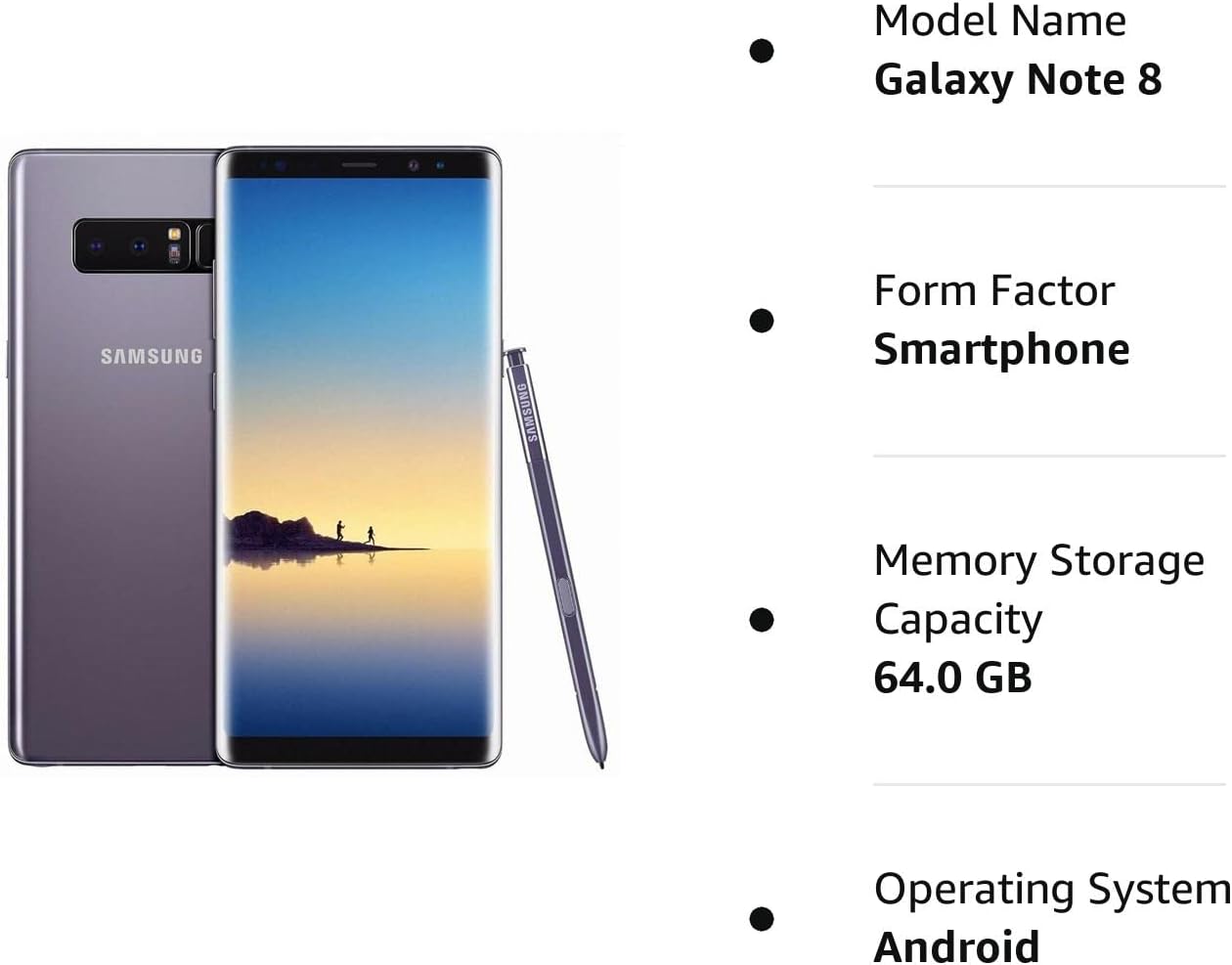 SAMSUNG Galaxy Note 8 N950U 64GB Unlocked GSM 4G LTE Android Smartphone w/Dual 12 MegaPixel Camera (Renewed) (Orchid Grey)