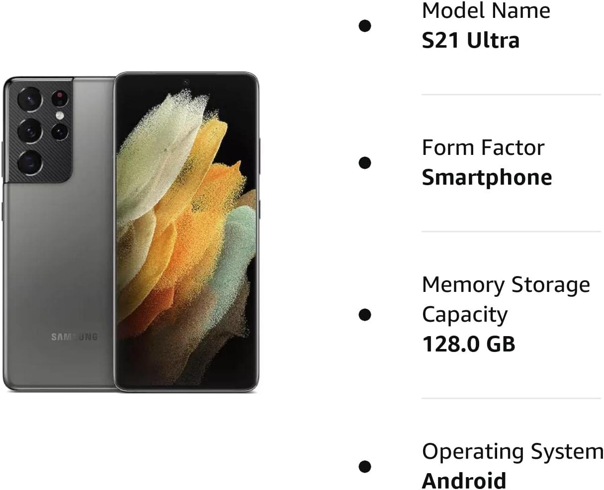 Samsung Galaxy S21 Ultra 5G, US Version, 128GB, Phantom Titanium – Unlocked (Renewed)