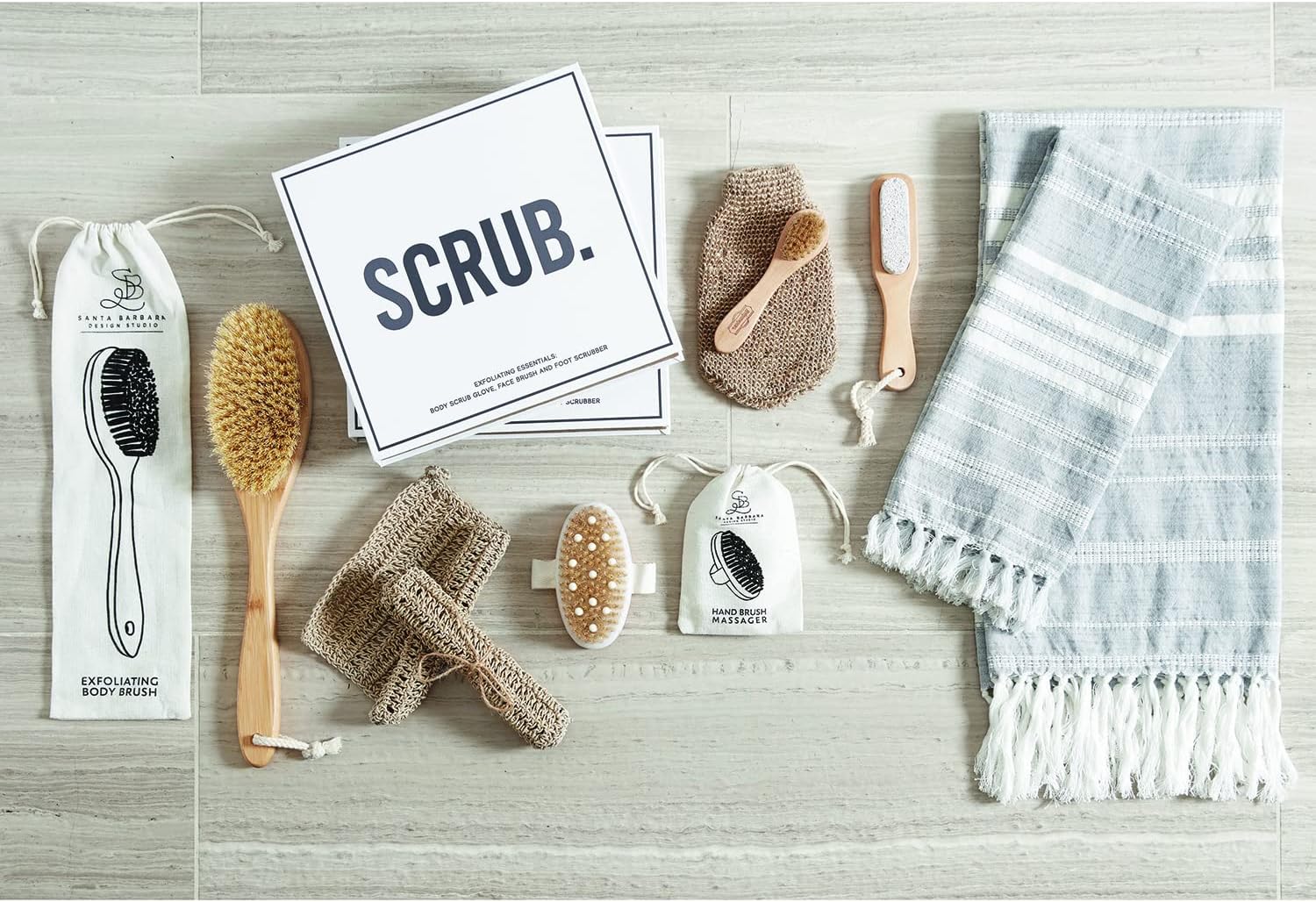 This unique matte white book box packaging makes these great gift for any self-care advocate. Includes 1 hemp glove for body and face exfoliation, 1 pumice stone foot scrubber, and 1 soft boar bristle face brush for gentle exfoliation. Santa Barbara Design Studio is all about imagination and design, working with artists in an effort to be fun, fab, and unique while creating eclectic collections encouraging personal style. Since 1976, SBDS has encouraged our customers to take a chance and experience something new and different. Our passion for finding the next wonderful product has translated into a broad line drawn from the works of the most talented and trendsetting designers. Experience the Santa Barbara Design Studio vibe.