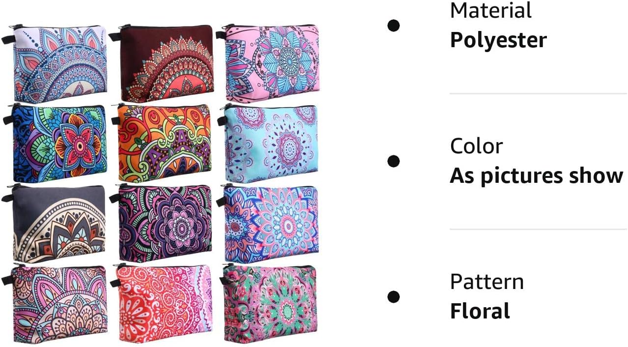 Sanwuta 12 Pieces Cosmetic Bags Makeup Bags Printed Mandala Flower Roomy Toiletry Bag Waterproof Beauty Bag Organizer Pouches with Zipper Travel Accessories for Women Girls, Sanwuta-01