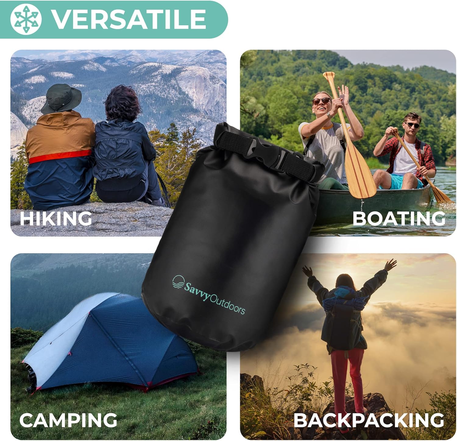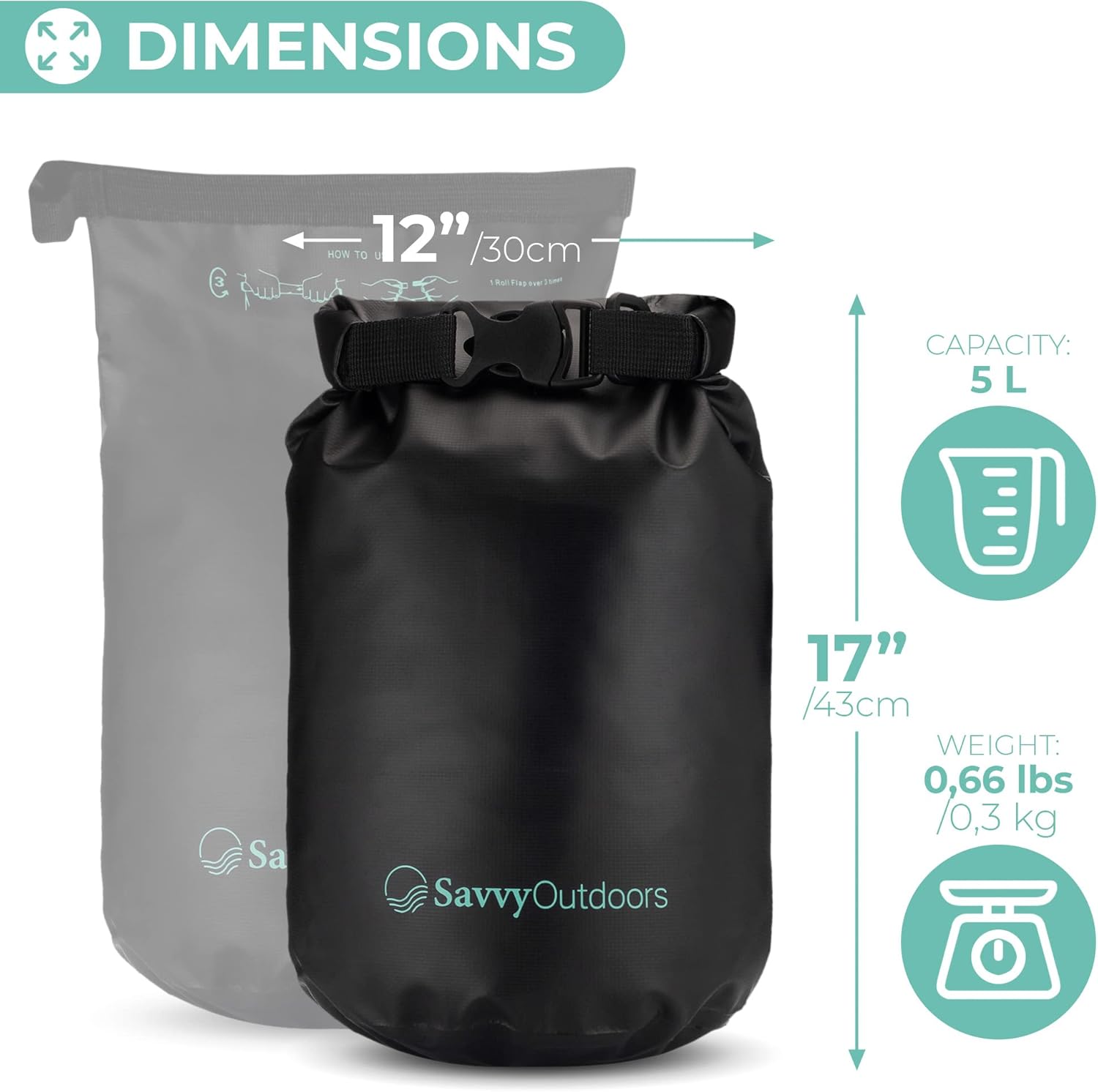 Savvy Outdoors Waterproof Dry Bag – Dry Bags for Food & Gear, Stuff Sacks for Backpacking and Camping Equipment, Waterproof Bag for Beach, Boating, Kayaking (5L, Black)