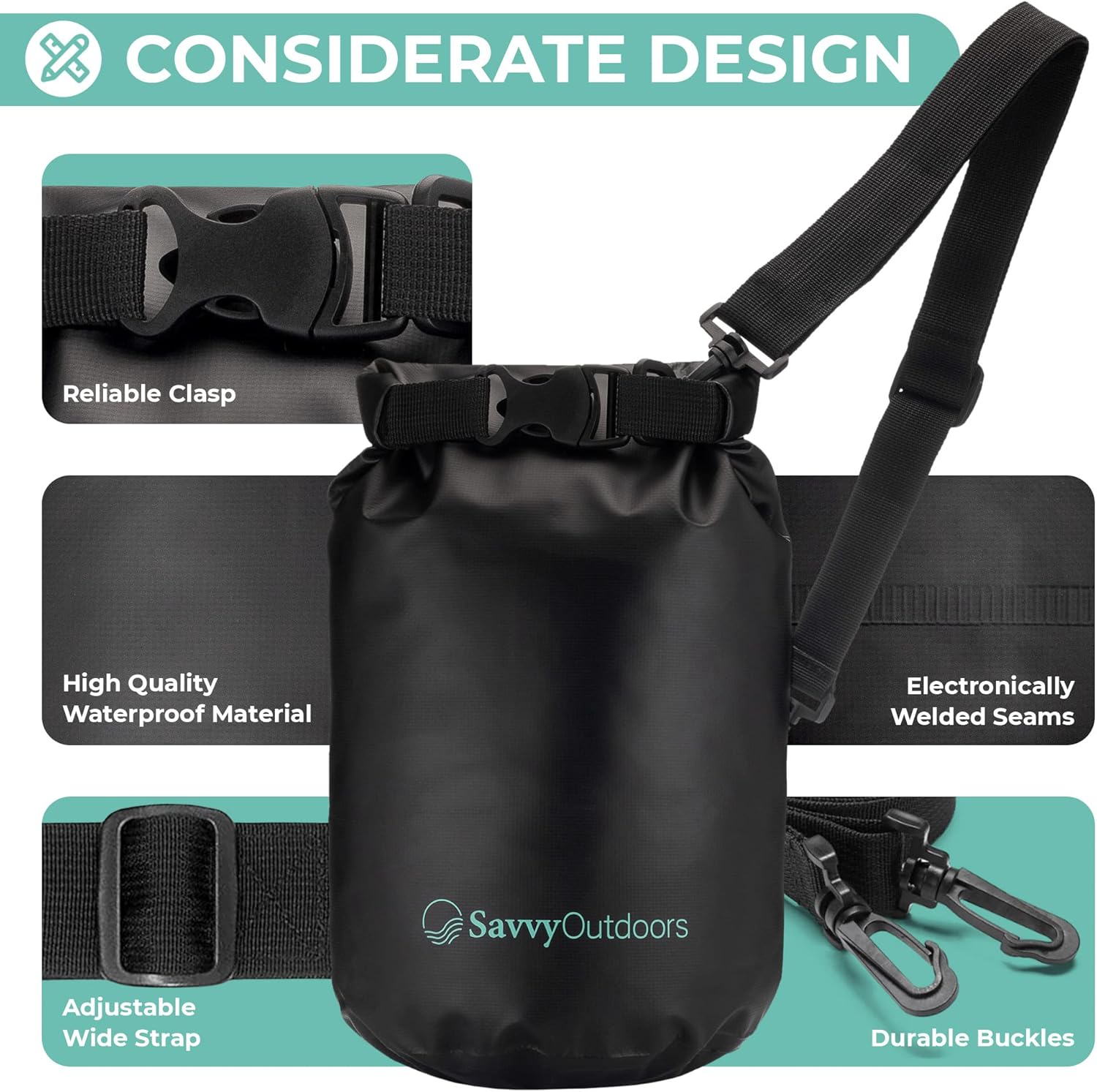 Savvy Outdoors Waterproof Dry Bag – Dry Bags for Food & Gear, Stuff Sacks for Backpacking and Camping Equipment, Waterproof Bag for Beach, Boating, Kayaking (5L, Black)