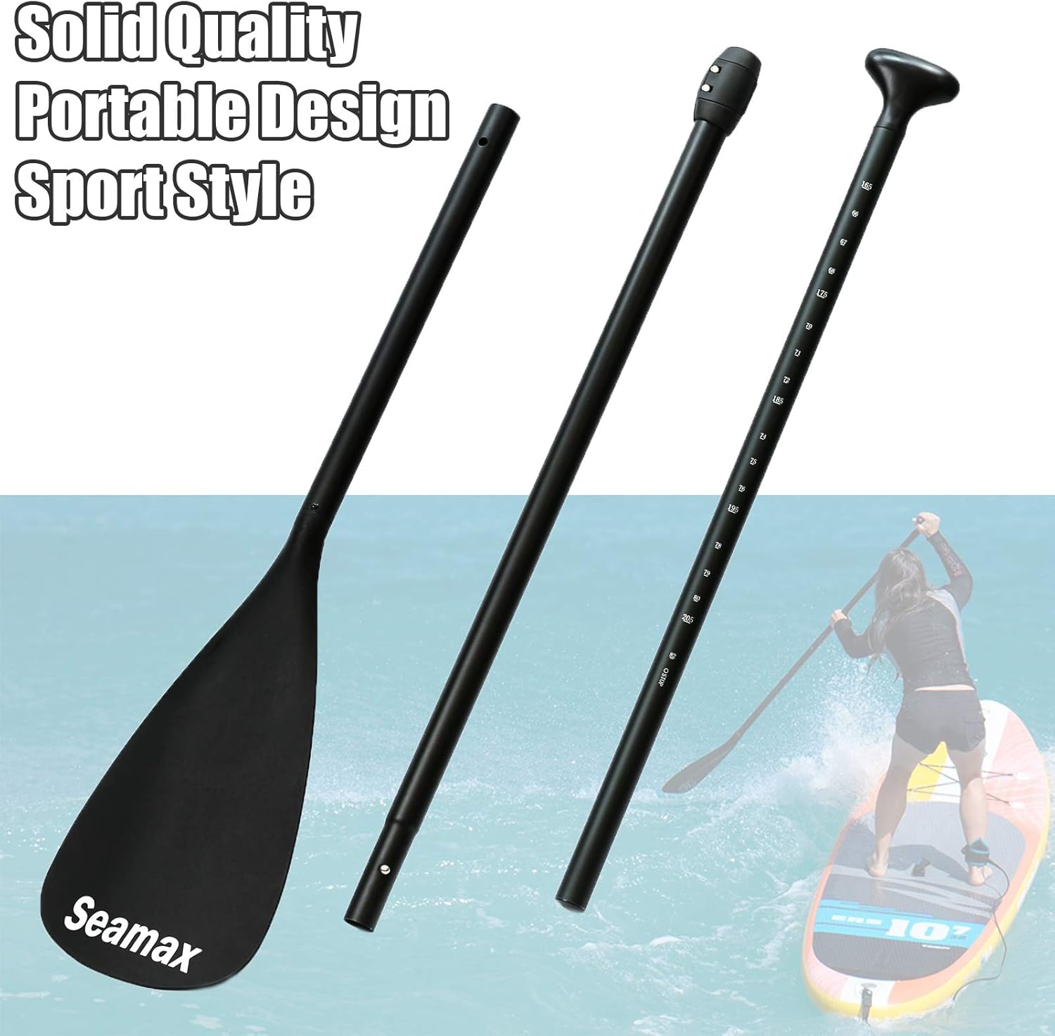 SEAMAX SUP Paddle for All Stand Up Paddle Board Floatable and Portable, Adjustable Length 68” to 82” for Kid and Adult