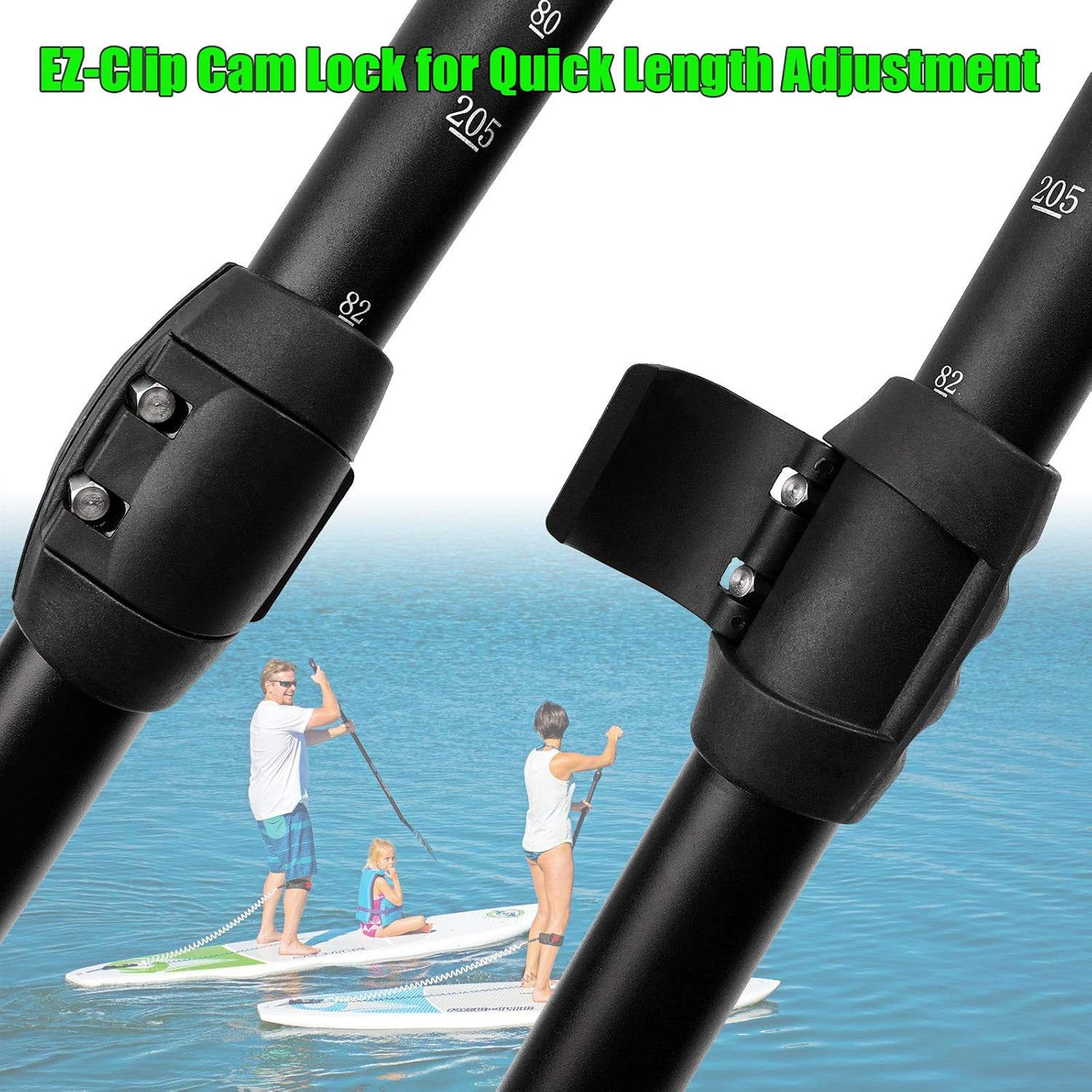 Solid and Anti Corrosion – This 3-piece adjustable SUP paddle delivers a solid aluminum shaft with black anti-corrosion coating, a durable 30% fiber reinforced nylon composite blade that offering heavy use, human Engineering design top handle give you more comfortable when paddling. Product is also very light weight and good for entrance level user with affordable price.