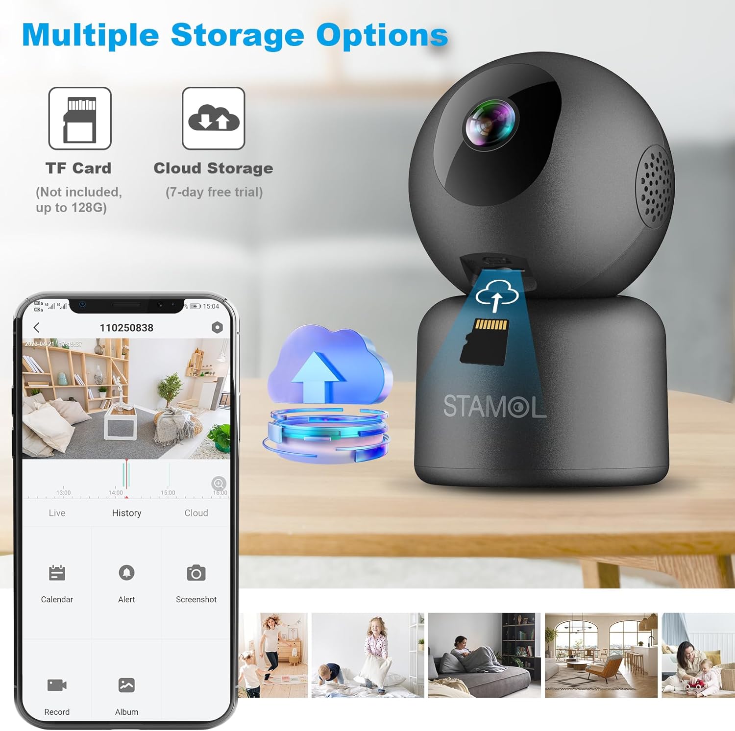 Security Camera Indoor, 2K Cameras for Home Security/Baby Monitor/Dog/Elderly, Smart 2.4G WiFi Pet Camera with Phone App, Motion Detection, Pan Tilt, 2 Way Audio, TF Card/Cloud Storage