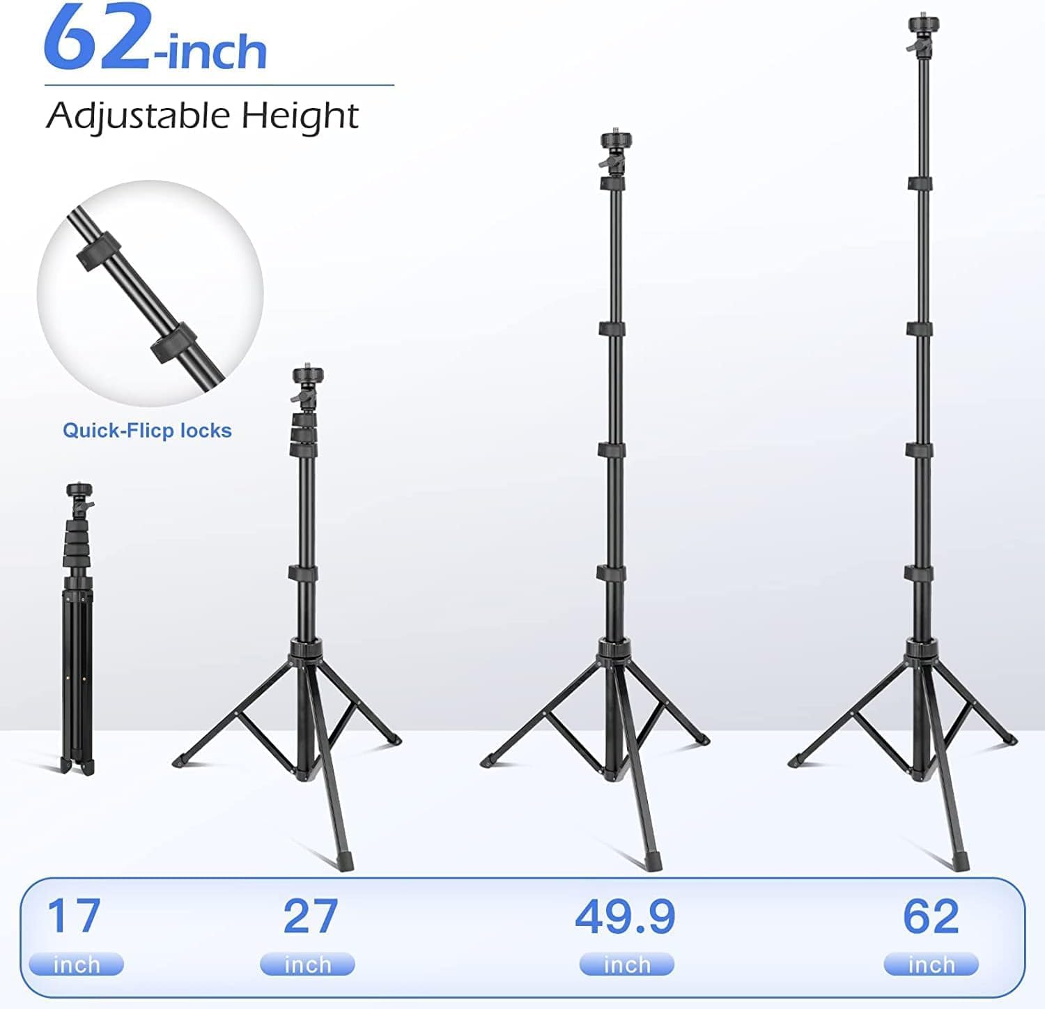 Adjustable Height and Perfect Angle: With the maximum height of 62inches, it can meet the demands for varied photography heights. 360 degrees rotation gives you flexibility for best viewing angle. Vertically or horizontally.