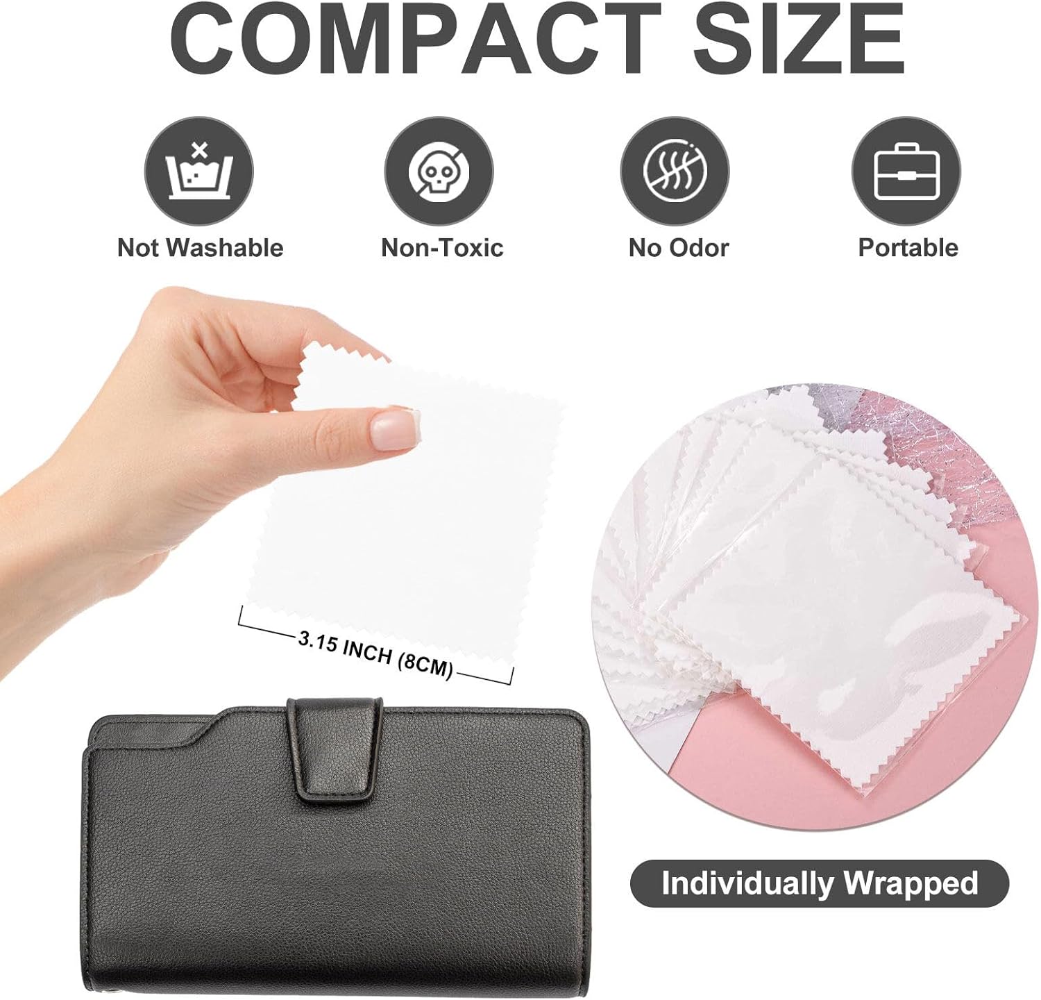 1. You will get: 100 pcs of jewelry cleaning cloth. Dust-proof and durable. Every jewelry cleaning cloth is packed individually to ensure best quality.