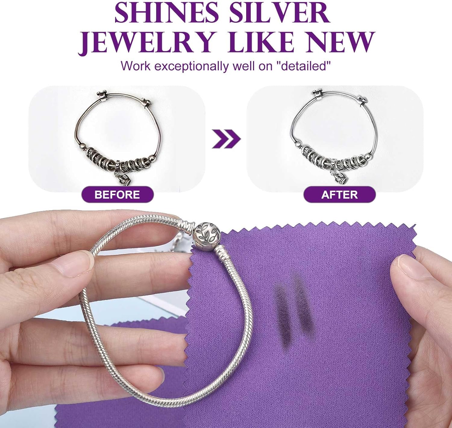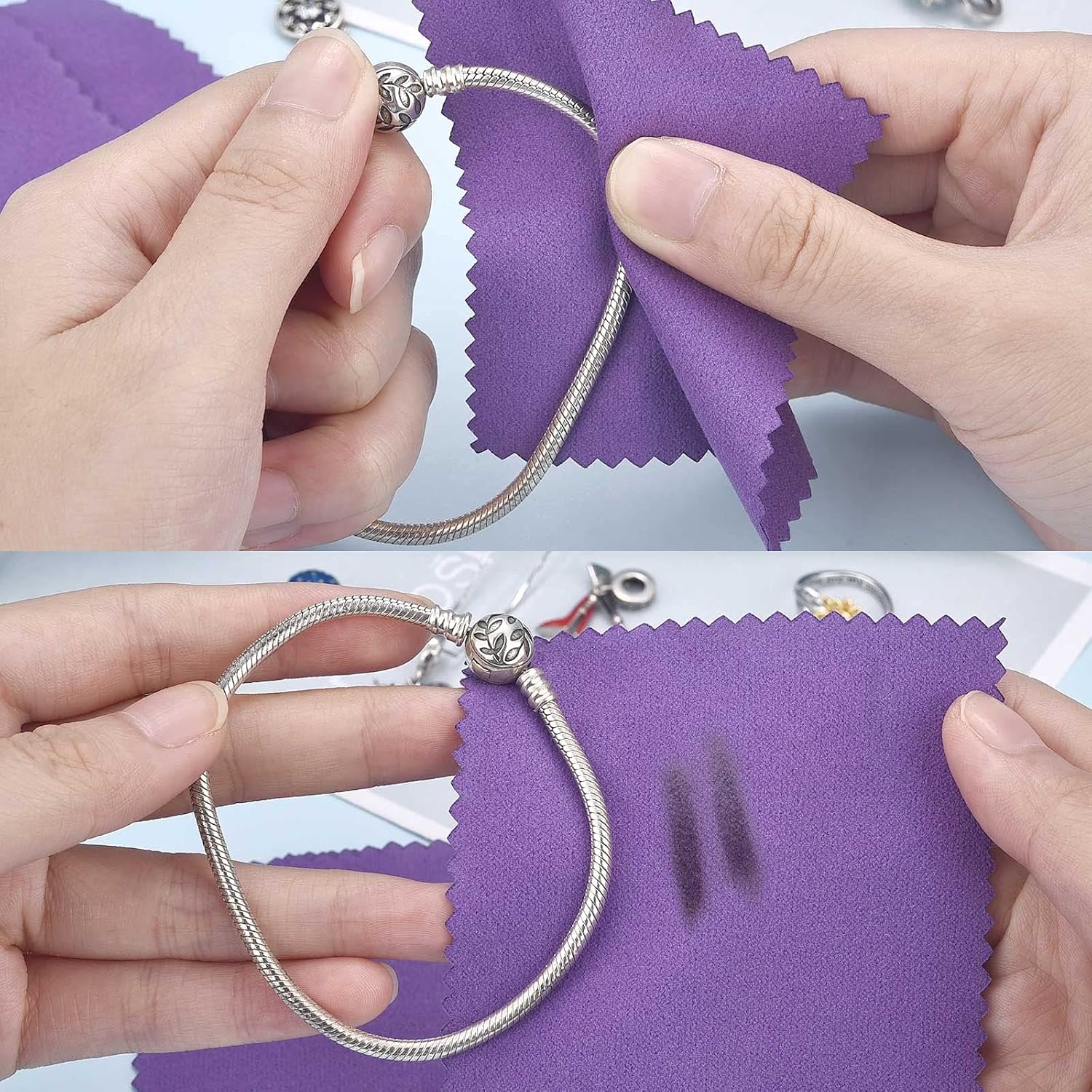 SEVENWELL 50pcs Jewelry Cleaning Cloth Dark Purple Polishing Cloth for Sterling Silver Gold Platinum Small Polish Cloth 8x8cm