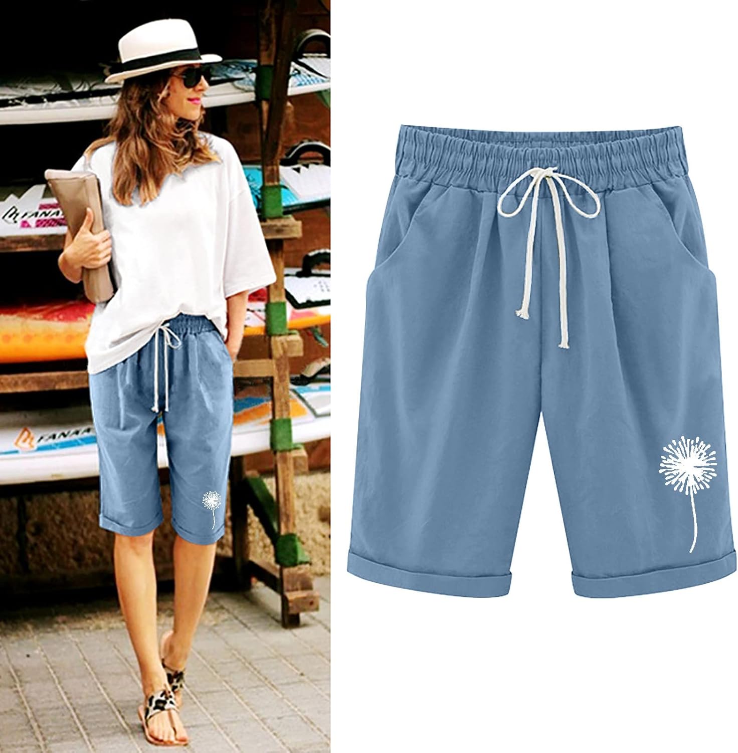 Shorts for Women Trendy Summer 2024 Beach Drawstring Knee Length Shorts Loose Fit Resort Wear Fashion Clothes