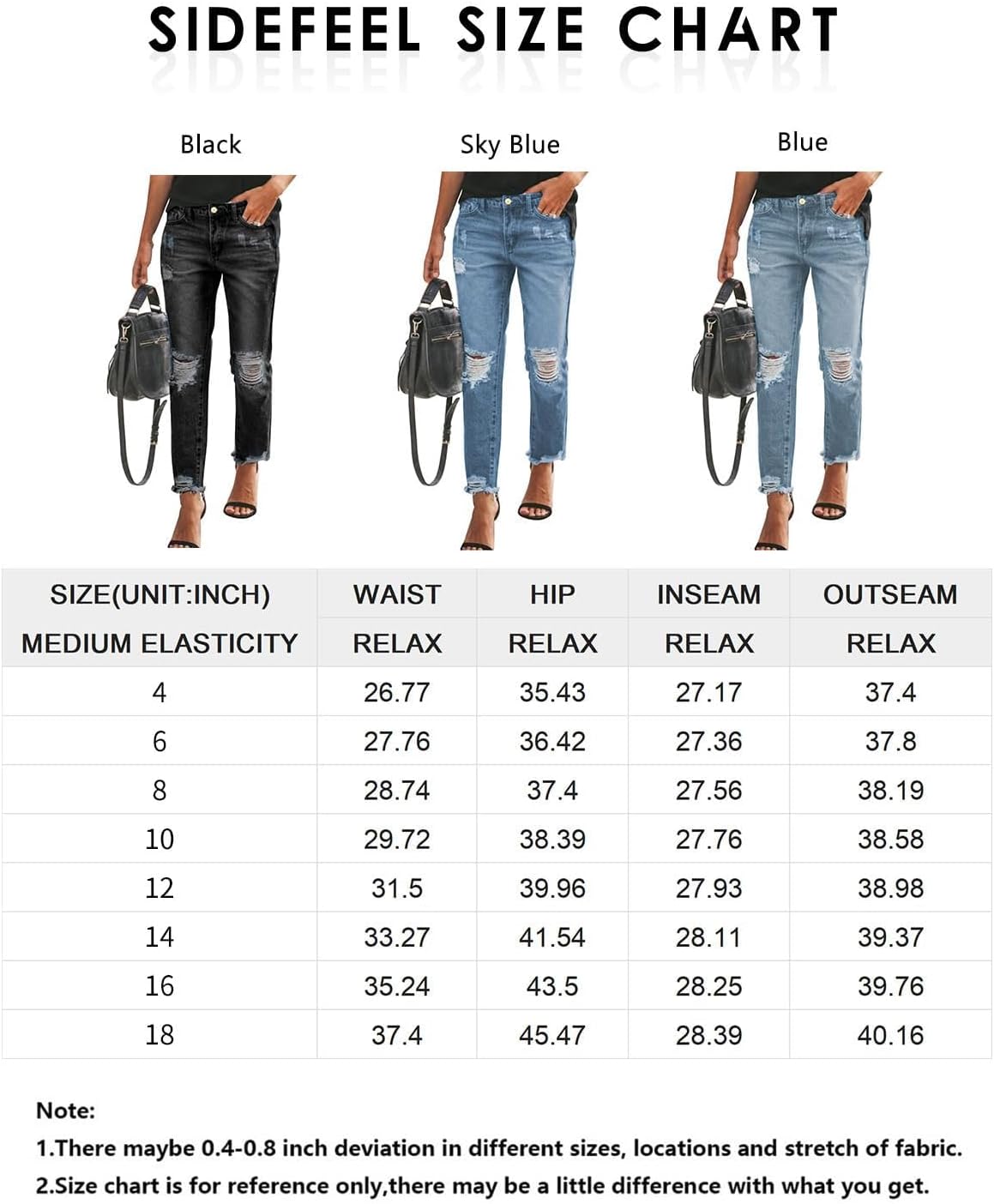 Sidefeel Women’s Boyfriend Jeans Stretchy Ripped Distressed Denim Pants Size 4-18