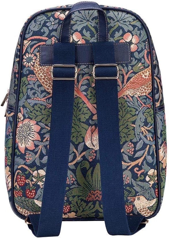 Signare Tapestry Backpack for Women Computer Rucksack Knapsack bookbags for women In William Morris Strawberry Thief Blue Design (BKPK-STBL)