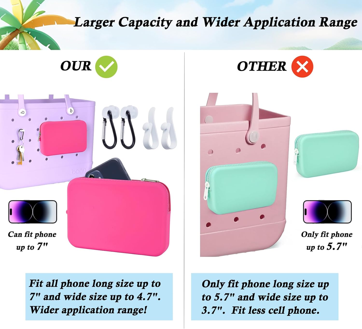 🌴THICK & DURABLE SOFT SILICONE MATERIAL: Our zipper phone wallet for Bogg Bag is made of thick and durable silicone material, Flexible and soft material make it its compatibility wider. Easy to clean!