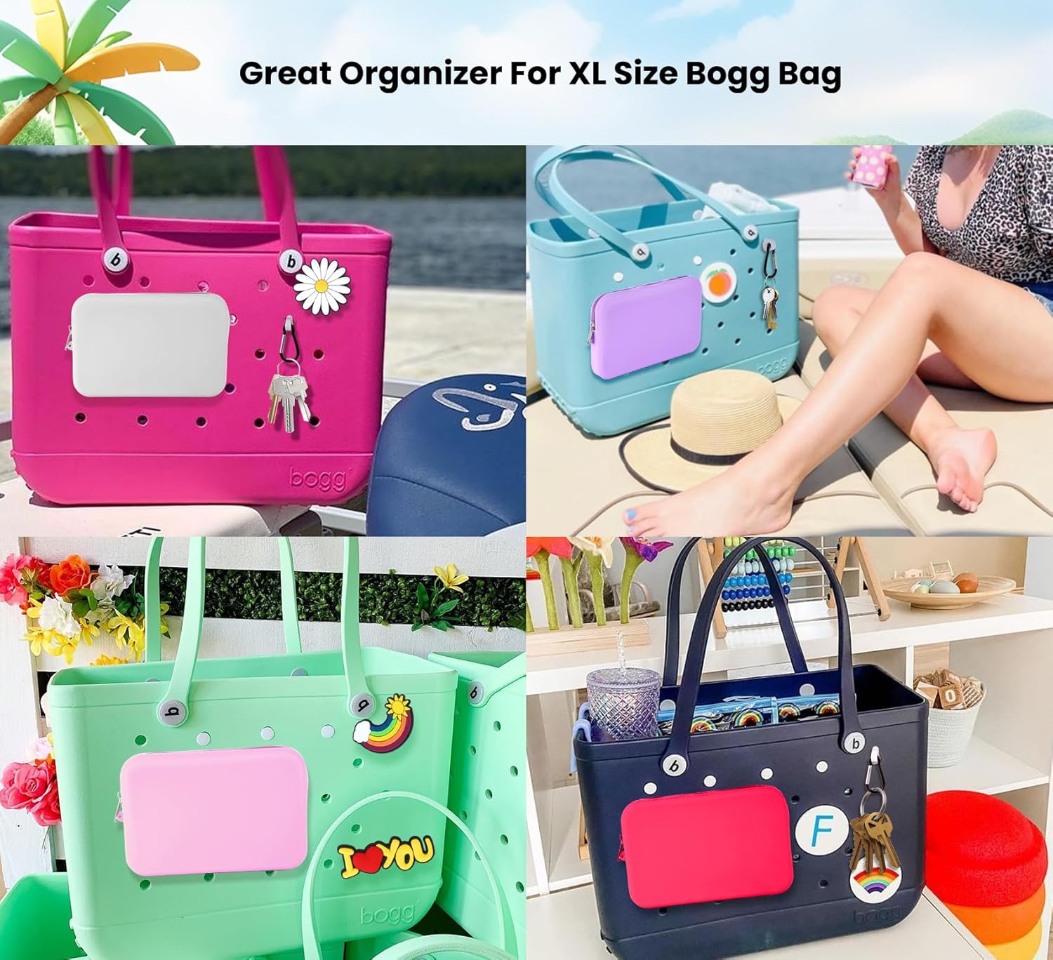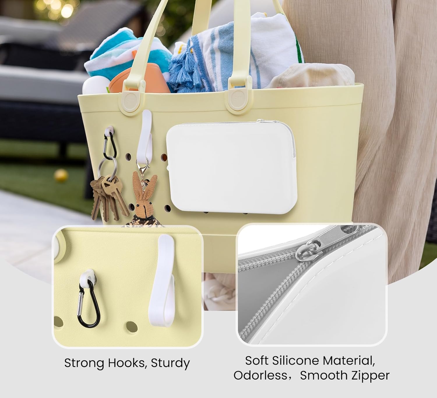 Silicone Bogg Bag Phone Holder for XL Bogg Bag Accessories Insert with 4 Hooks Universal Bogg Bag Phone Pouch 7 Inch Bogg Bag Zipper Wallet for Simple Modern & XL Bogg Bag Phone Holder White