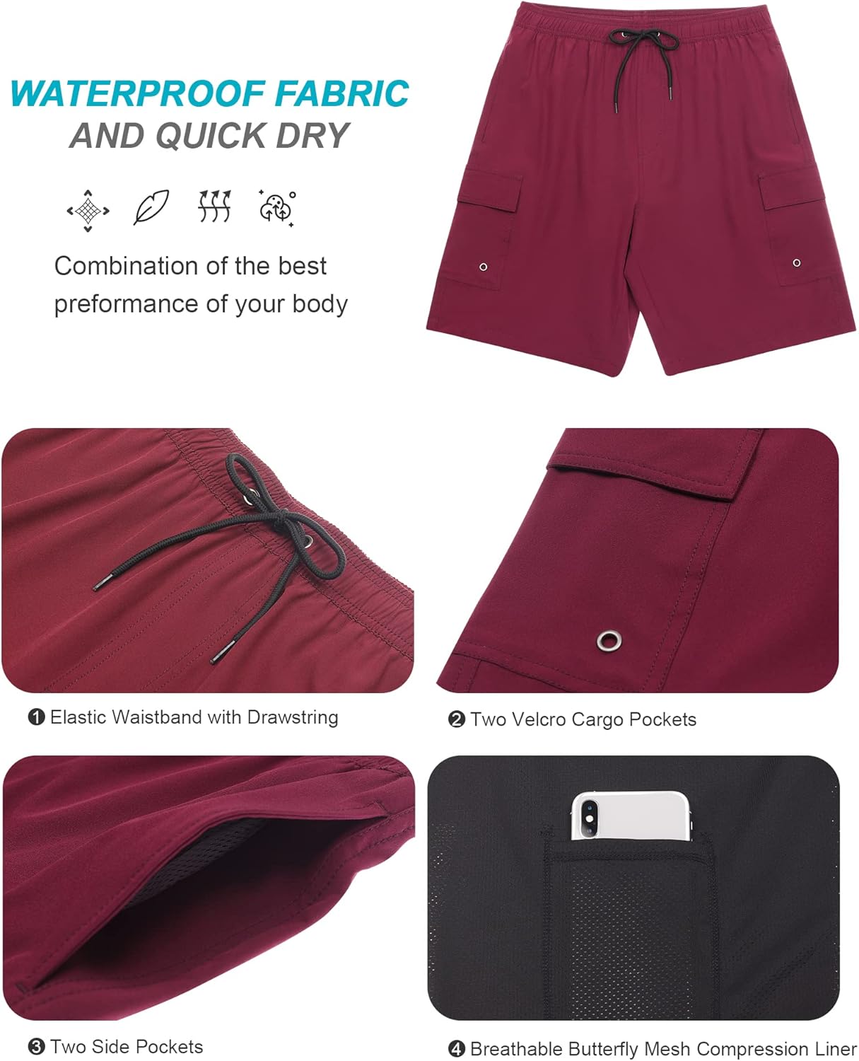 SILKWORLD Men’s Swim Trunks with Compression Liner Quick Dry Bathing Suits 9 Inch Swimming Shorts with Cargo Pockets