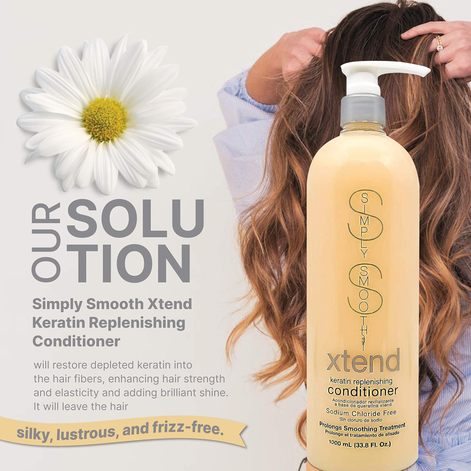 SIMPLY SMOOTH Xtend Keratin Replenishing Original Conditioner Keratin & Collagen Infused Daily Moisturizer For All Hair Types Restore & Provide Strength & Enhance Shine 33.8 Oz