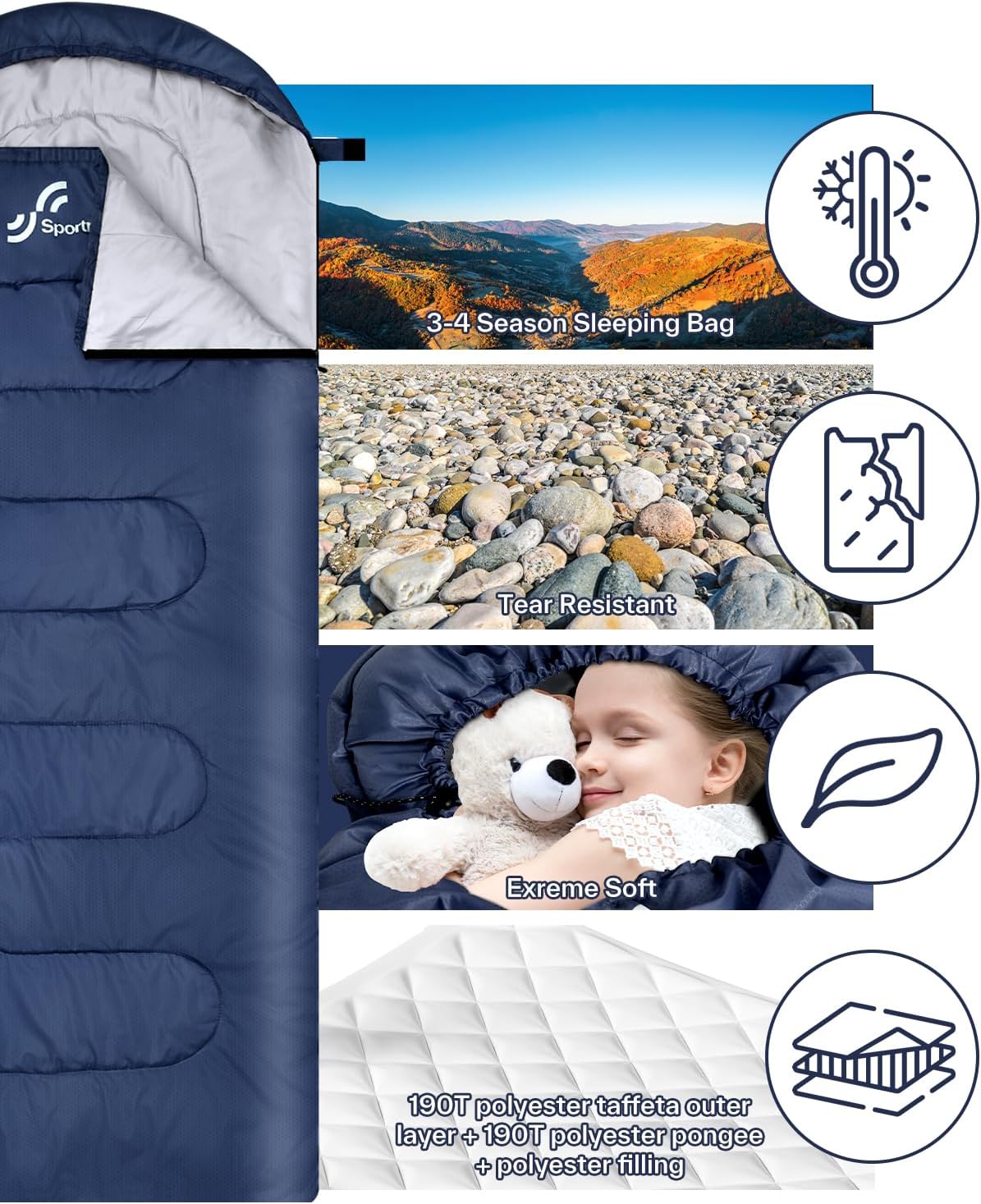 Sleeping Bags for Adults, Sportneer Sleeping Bag 3-4 Season Warm Weather Waterproof Lightweight Camping Sleeping Bag for Camping Backpacking Hiking Outdoor Travel