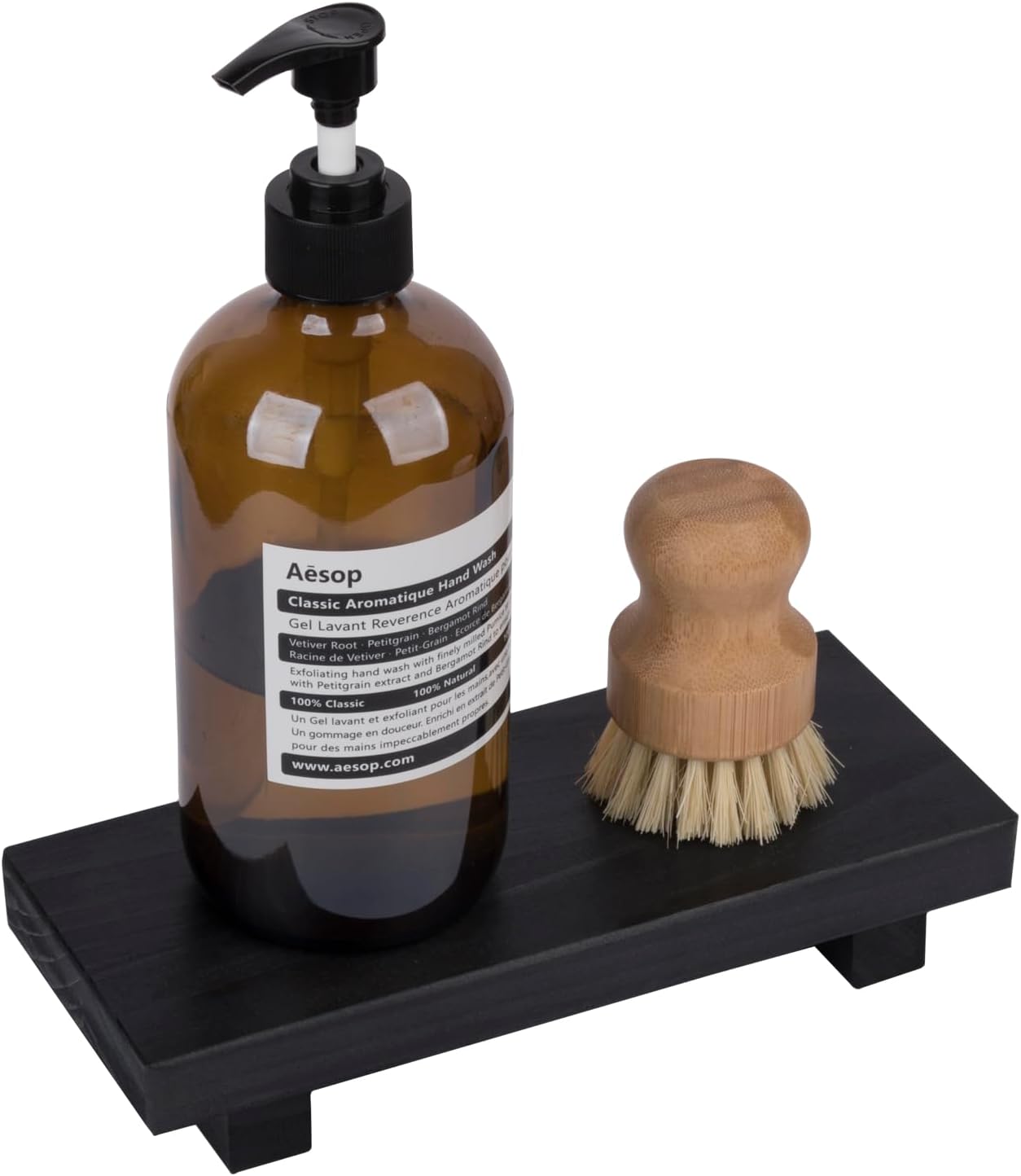 Small Bathroom Counter Organizer Holder Wood Pedestal Stand Riser Farmhouse Decor Soap Tray for Kitchen, Sink, Lotion Bottle, Plant, Cosmetic, Black
