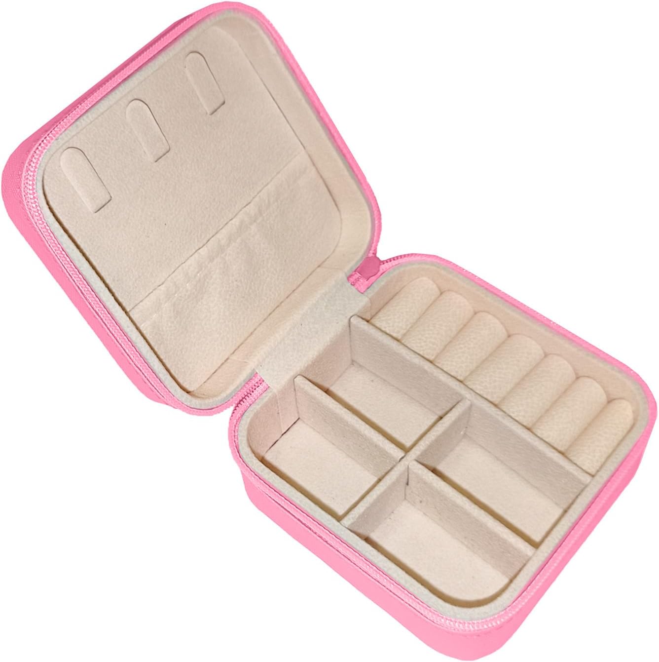 [Good Material] The exterior of our jewelry box is made of 104% PU leather, so it is waterproof. Its smooth closing zipper to protect your jewelry from lost. The interior is made of high quality velvet, which is soft and luxurious and will protect your jewelry from scratches.