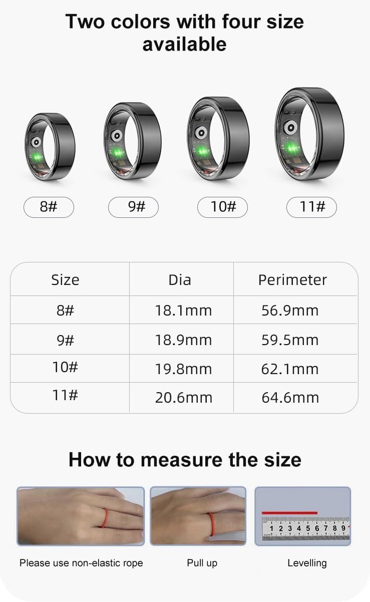 Stainless Steel Material – Crafted from lightweight and durable titanium alloy, our smart ring ensures excellent workmanship and long-lasting durability.