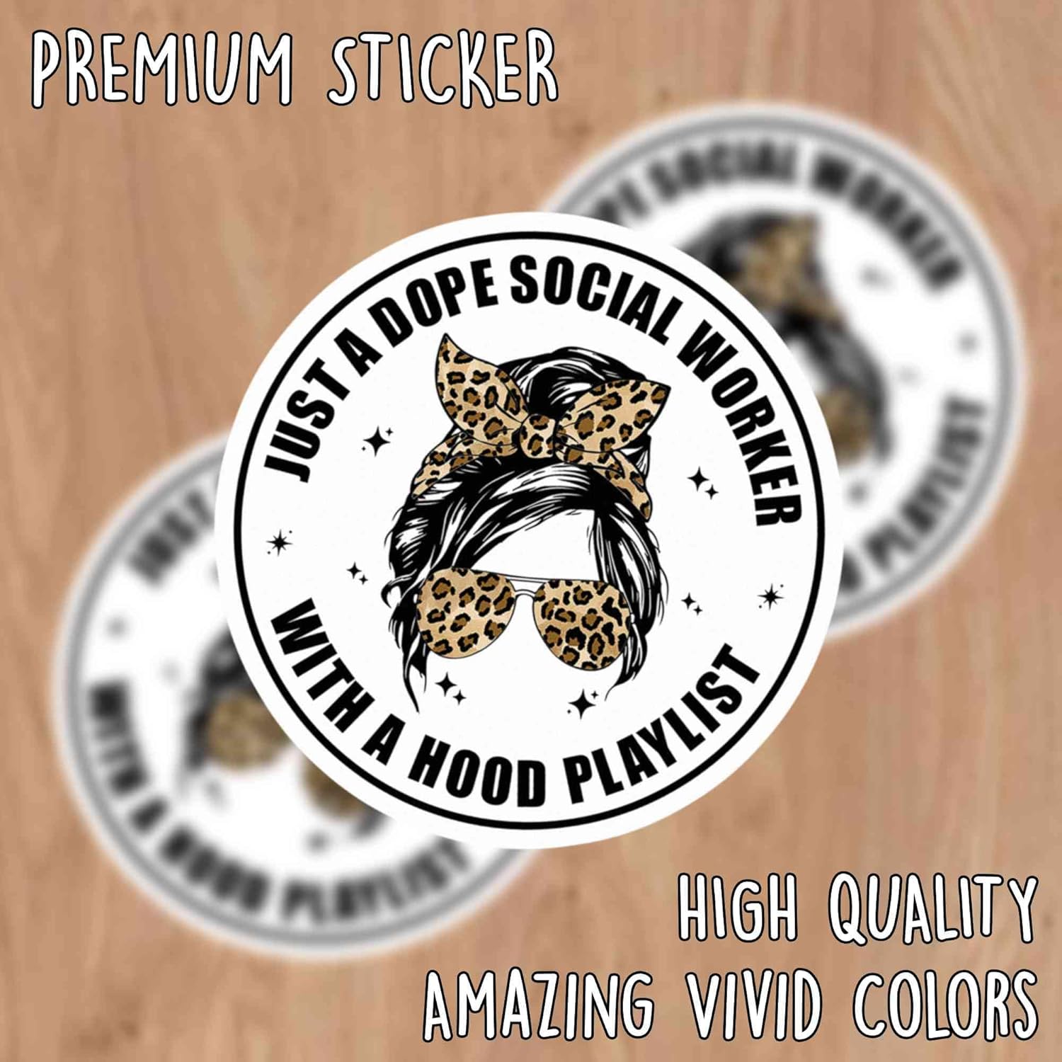 Be the first to review “Social Worker Sticker Just A Social Worker with A Hood Playlist Messy Bun Leopard Circle Weather-Resistant Sticker for Water Bottles, Laptop, Window, Car Size 3″””