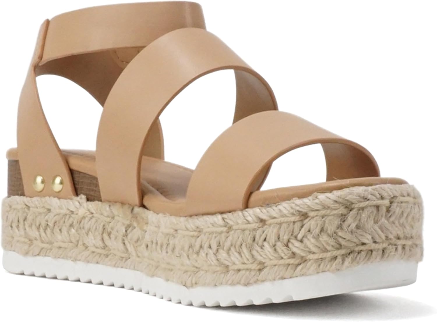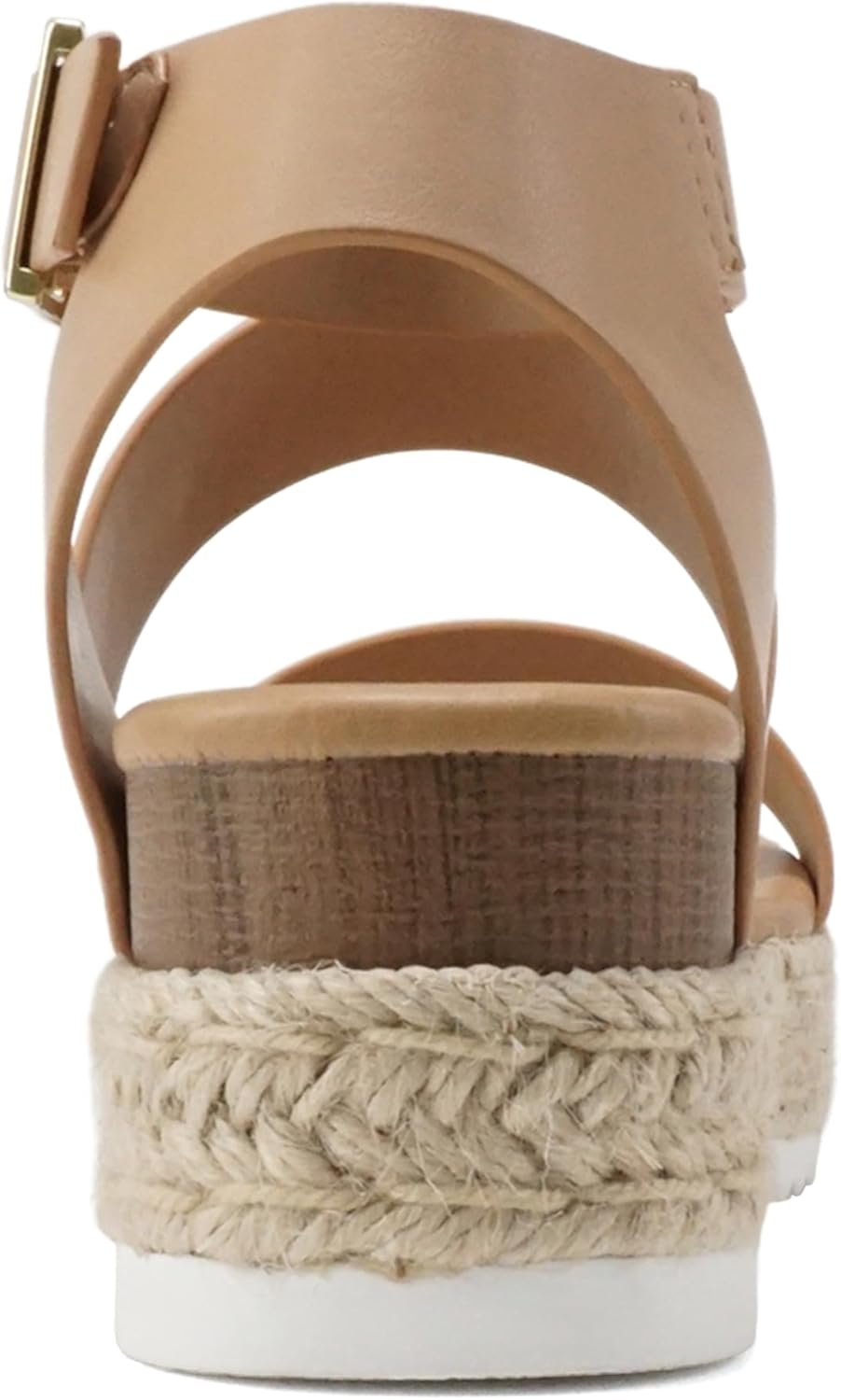 Soda Top Shoe Bryce Open Toe Buckle Ankle Strap Espadrilles Flatform Wedge Casual Sanda