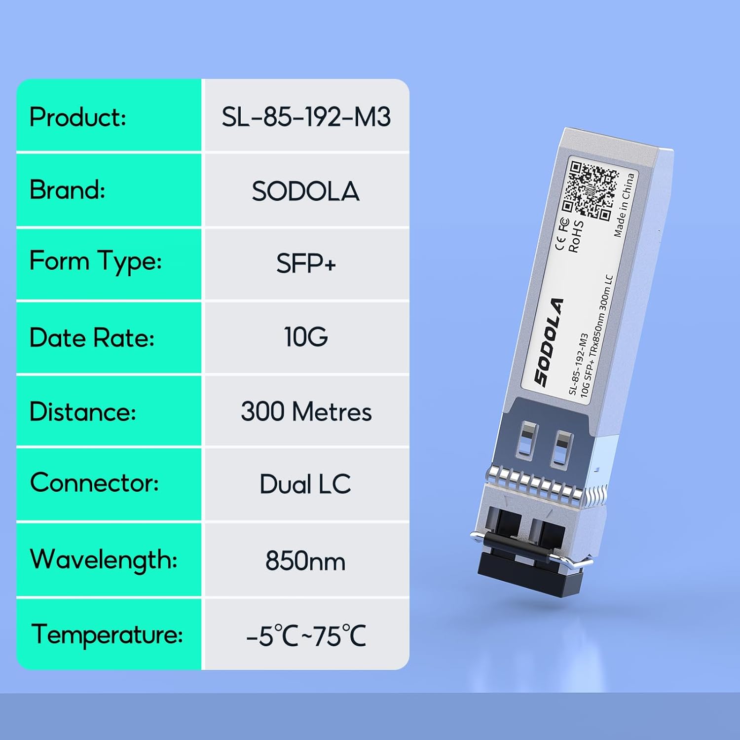SODOLA 10GBase-SR SFP+ Transceiver, 850nm MMF, up to 300 Meters(SL-85-192-M3)