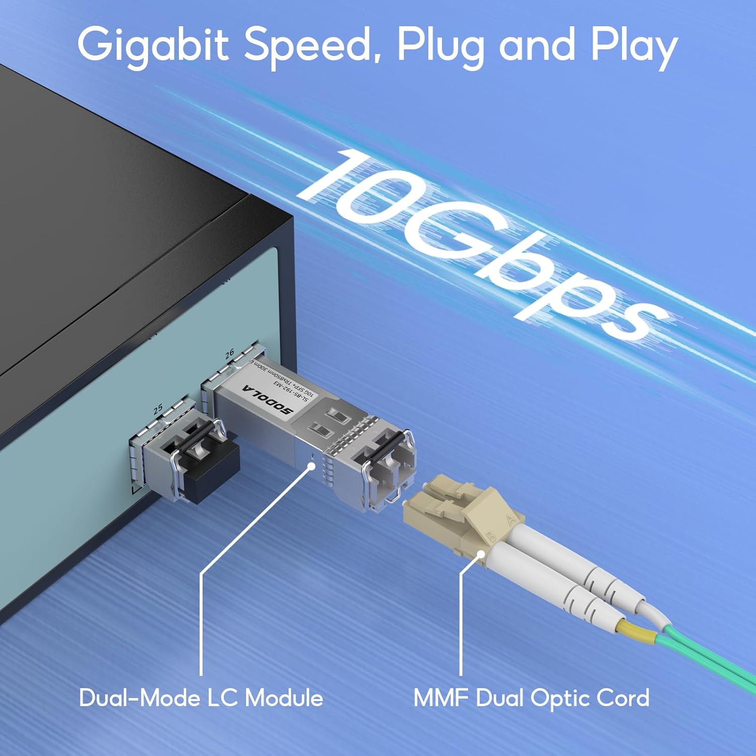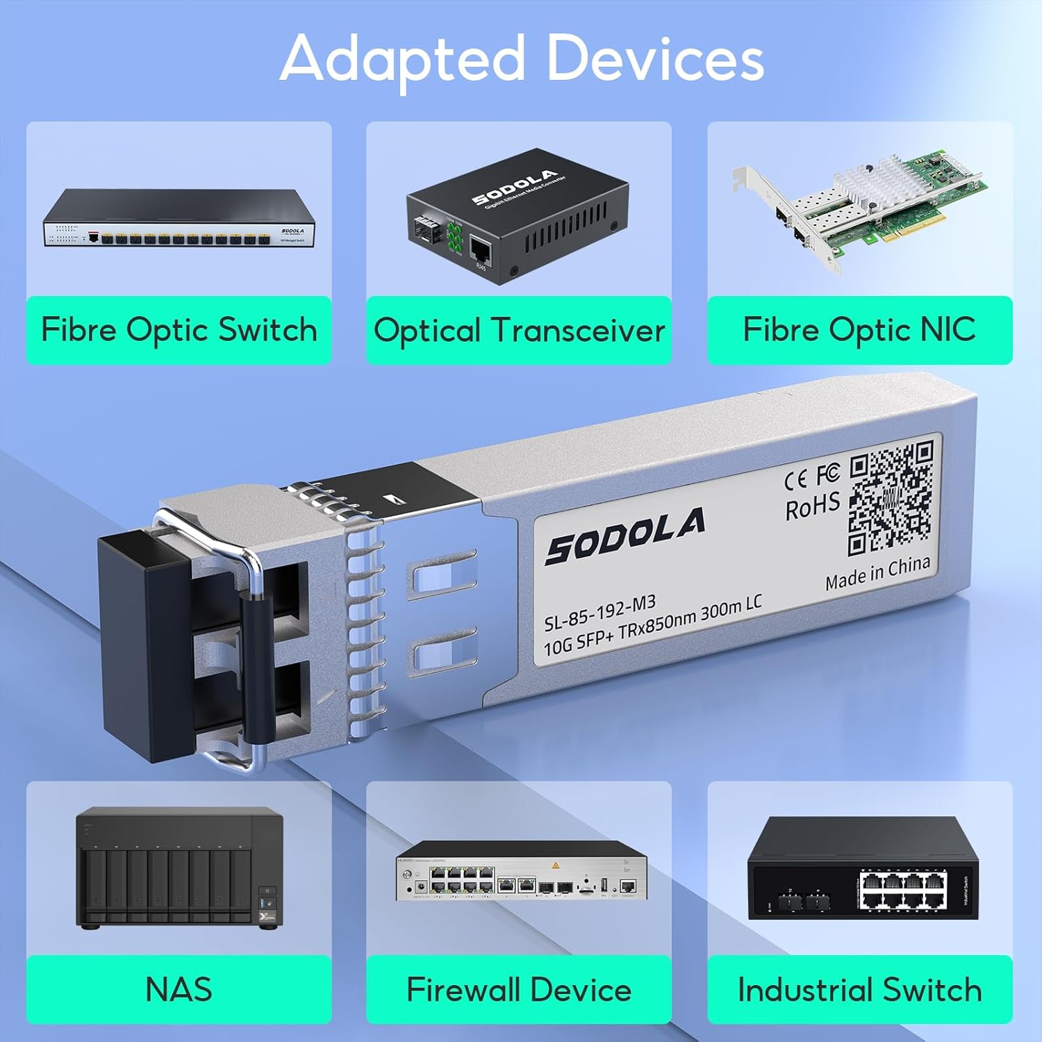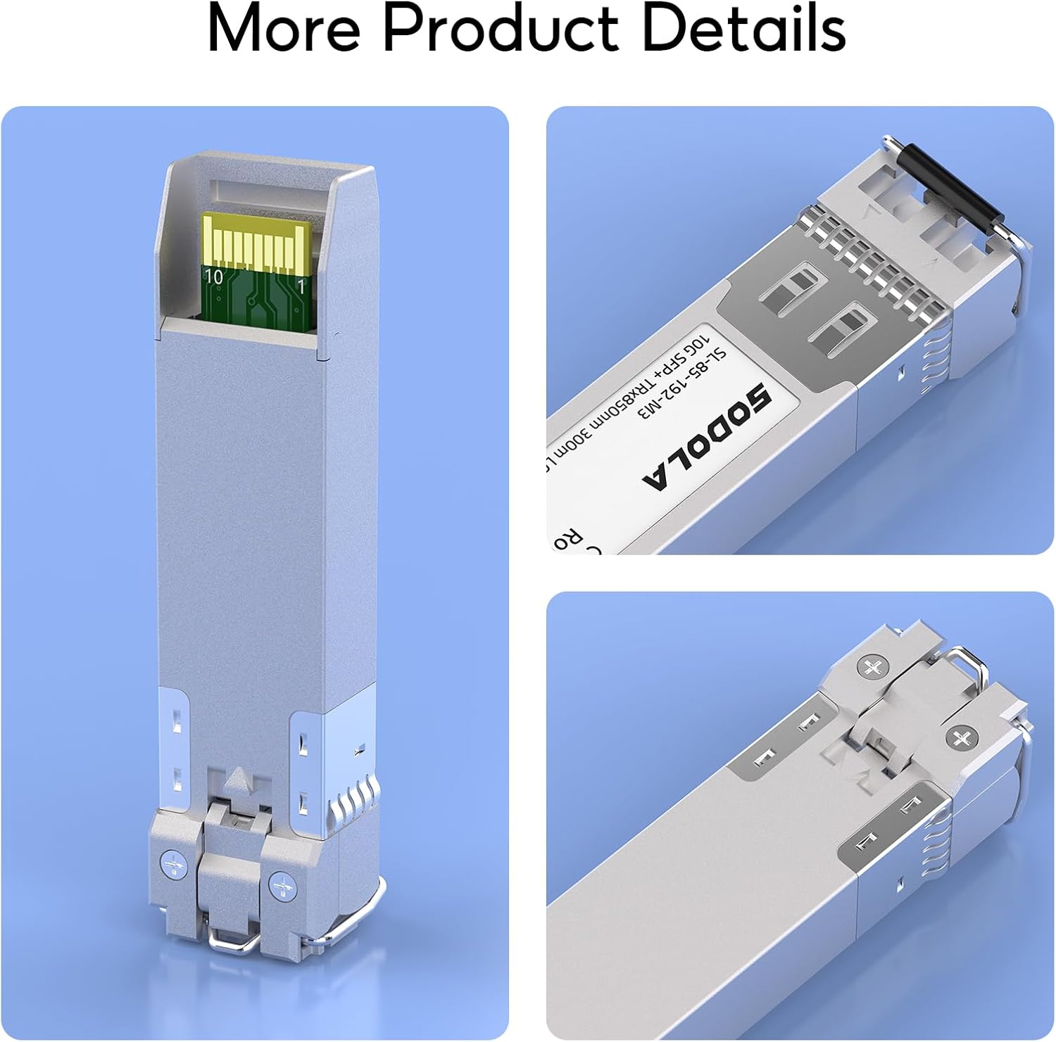 SODOLA 10GBase-SR SFP+ Transceiver, 850nm MMF, up to 300 Meters, Compatible with Cisco SFP-10G-SR, Meraki MA-SFP-10GB-SR, Ubiquiti UniFi UF-MM-10G, Fortinet, Mikrotik, Netgear, TP-Link and More