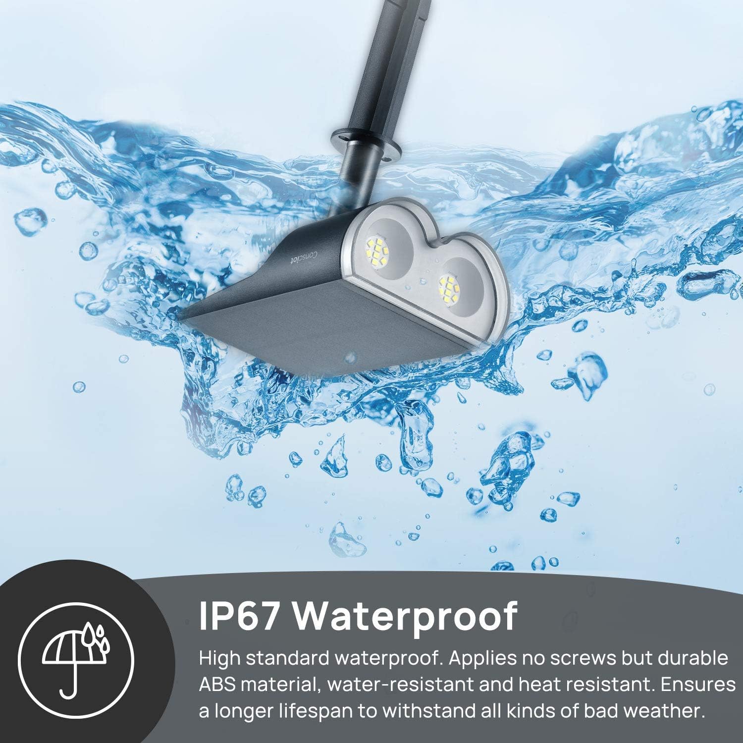 🌟[Adjustable & Large Solar Panel] – Unlike regular landscape spotlights, Consciot wireless solar projector lights can be adjusted 90° up and down, and be rotated 180° left and right. Super flexible to pivot the light to where you need it. The larger solar panel has a high conversion rate up to 20%, taking shorter time to get charged.