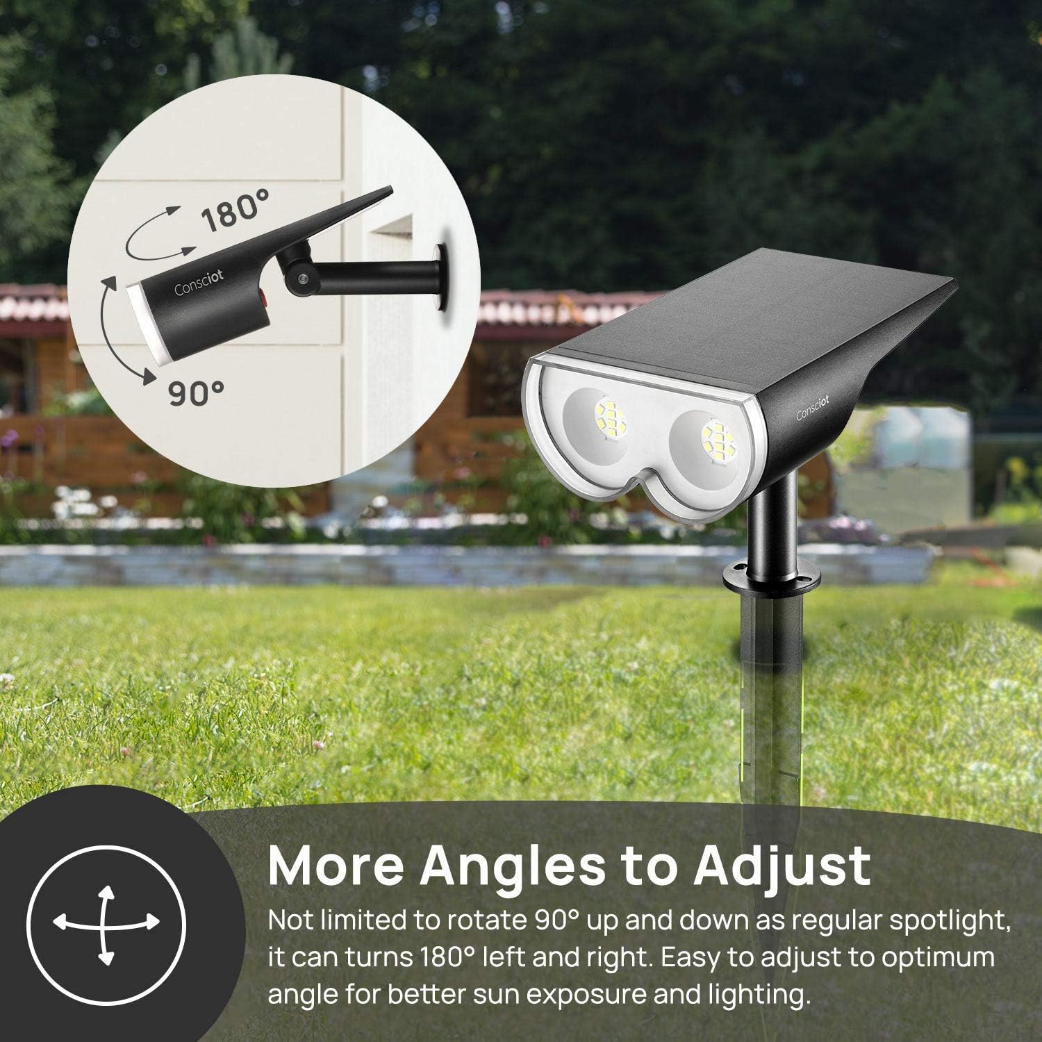 Solar Spot Lights Outdoor, Consciot 16 LEDs IP67 Waterproof Solar Outdoor Lights, Auto On/Off Solar Landscape Spotlights, 2-in-1 Adjustable Wall Lights for Garden Yard Pathway, 2 Pack (Cool White)