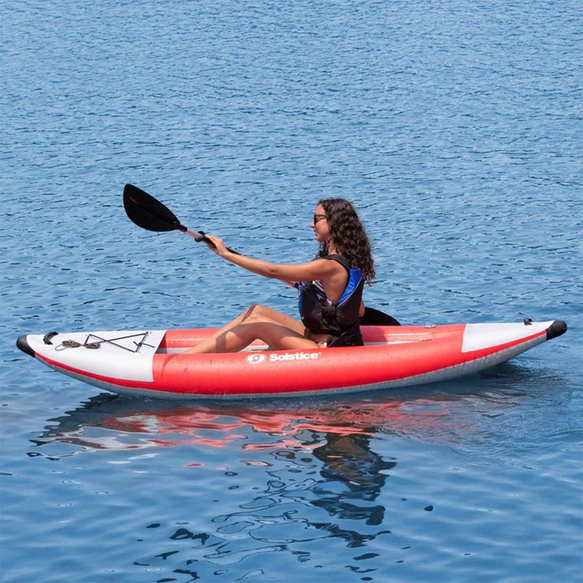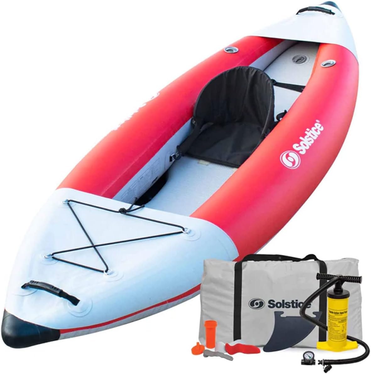 SOLSTICE Flare 1 Person Inflatable Fishing Kayak Boat For Adults & Kids 9’6” X 35” | Incl. Adjustible Bucket Seat, Bungee Storage, Skeg, Pump & Bag | Heavy Duty Dropstitch & PVC Material