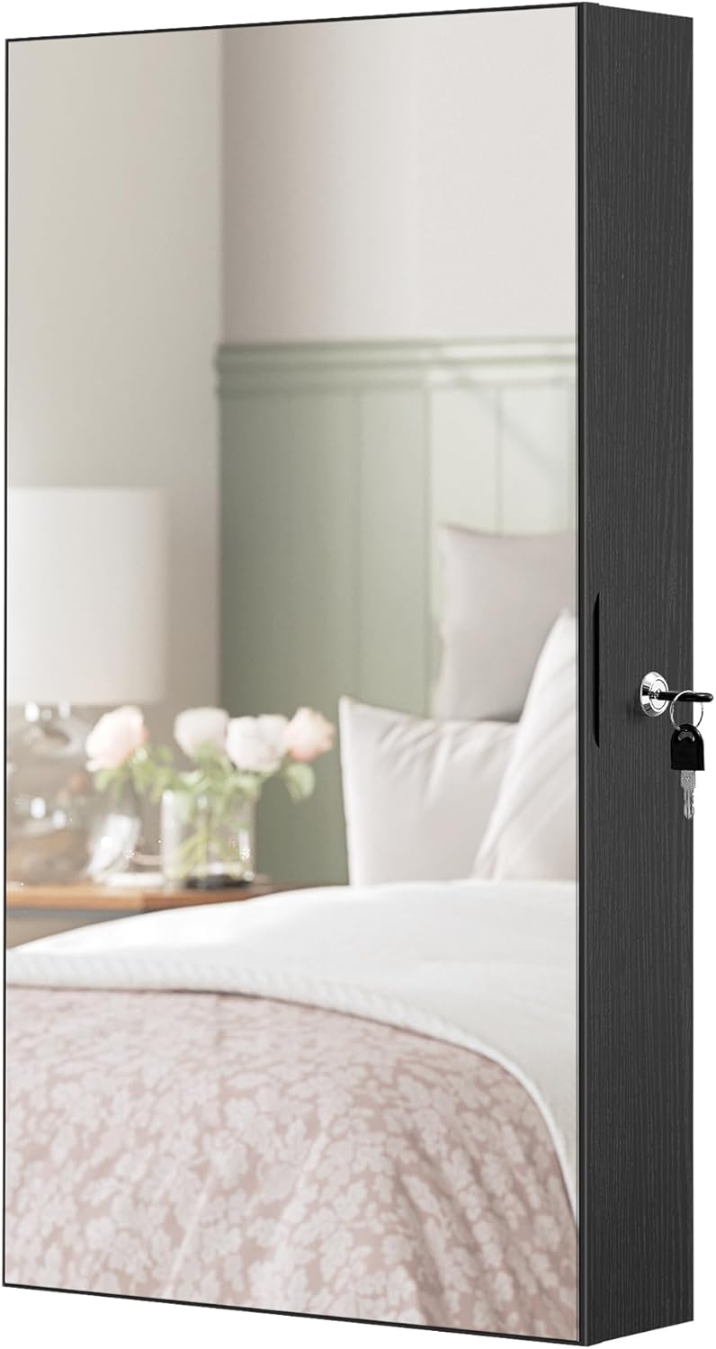 [Storage and Mirror in One] With this 2-in-1 jewelry cabinet, you get a 14.6″ x 26.4″ large frameless mirror and tons of storage behind it, which saves you space as well as time by allowing you to pick, wear, and check out matching jewels all in one place