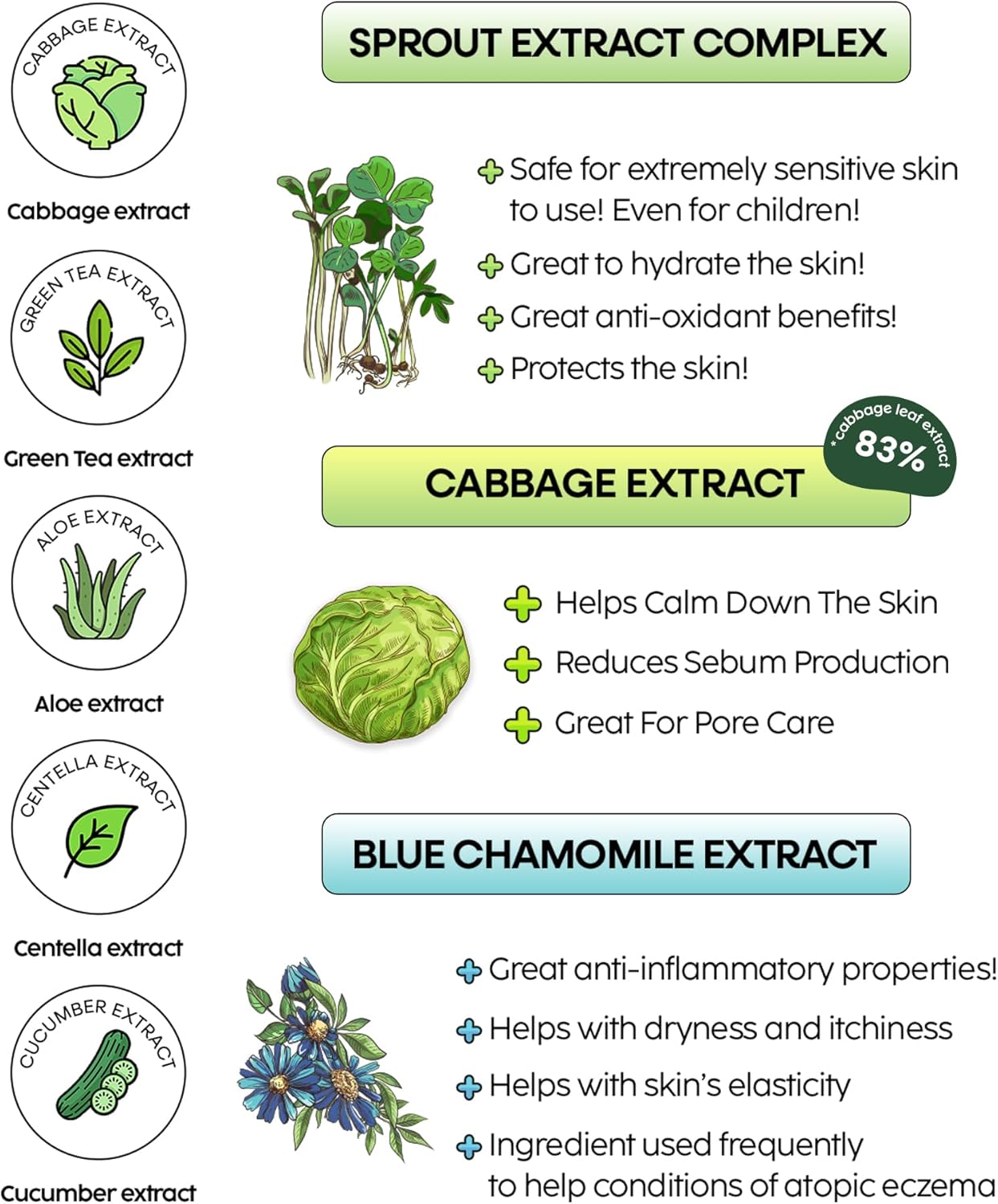 🌿 ENHANCED CALMING FORMULA – Now with 83% Cabbage Extract and a unique Sprout Extract Complex, our toner pads offer unparalleled calming and soothing for all skin types, including extremely sensitive and children’s skin.