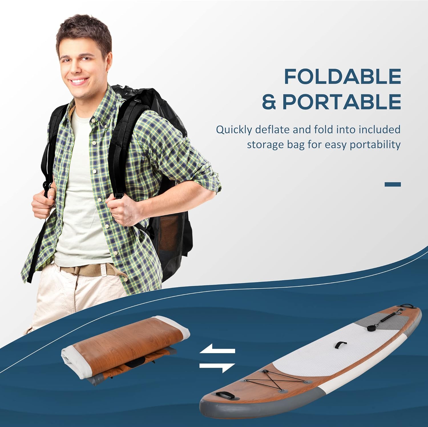 Soozier Inflatable Stand Up Paddle Board Ultra-Light Yoga SUP with Non-Slip Deck Pad, Premium Accessories, Waterproof Bag, Safety Leash and Hand Pump for Surfing, Touring and Fishing, Brown