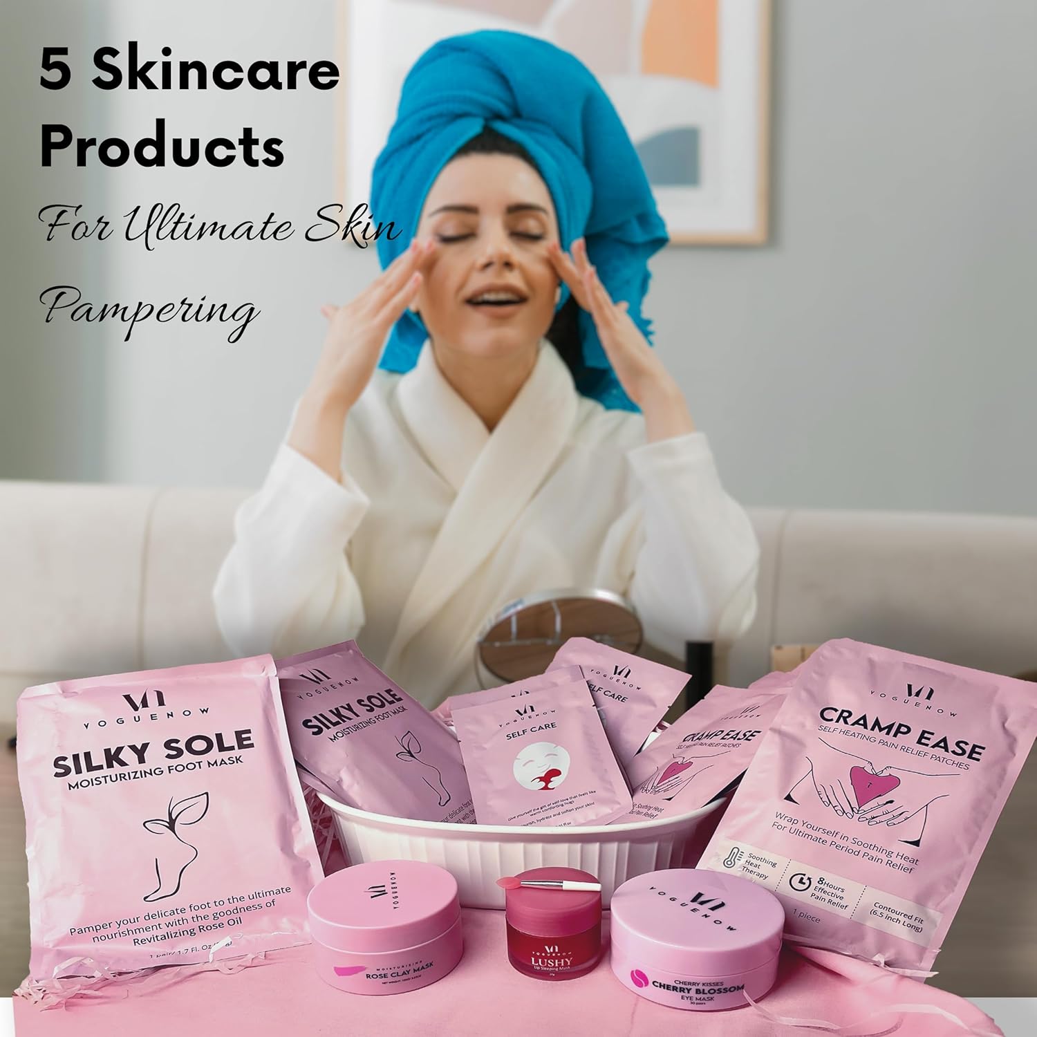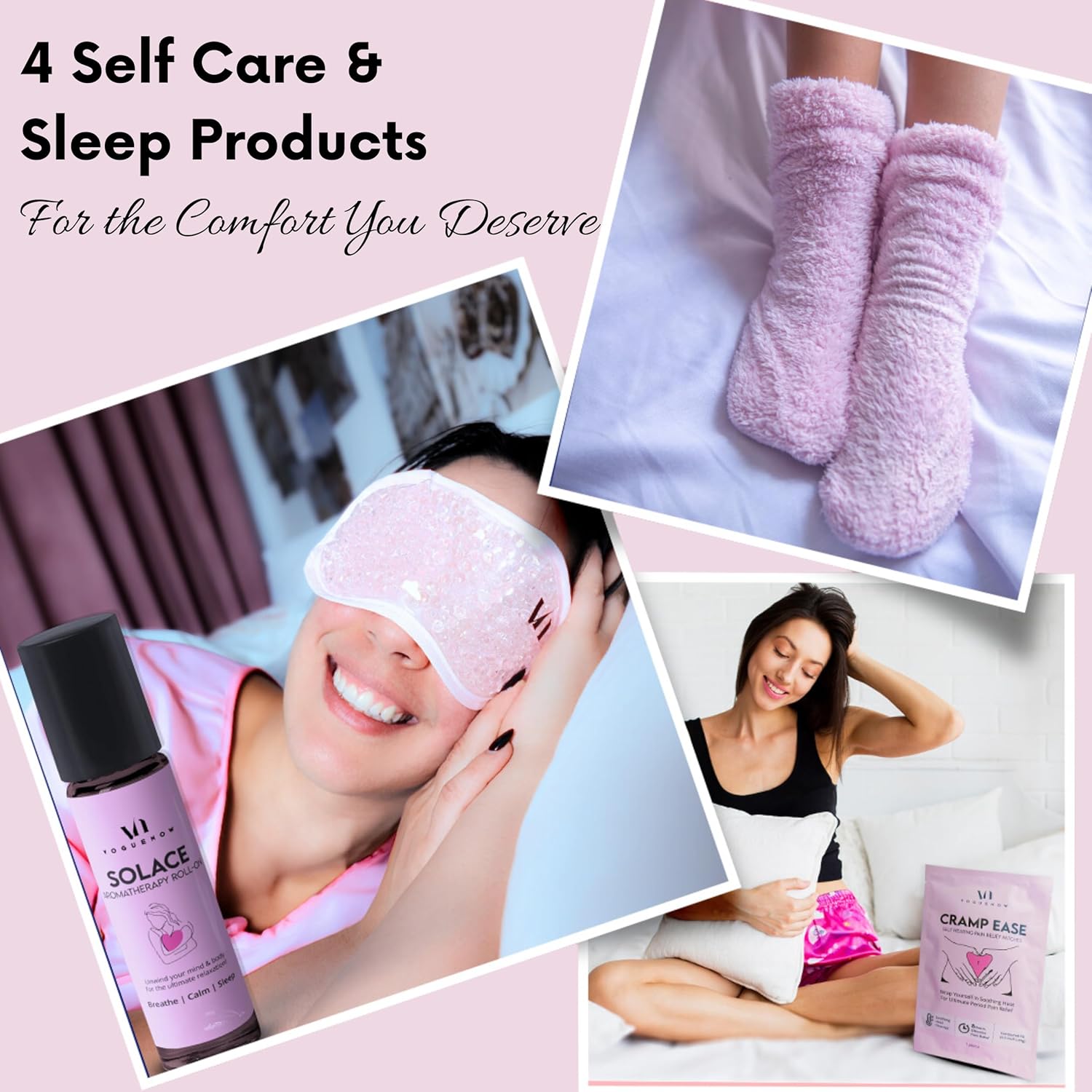 😌 SLEEP TIME & SELF CARE BLISS: Ensure a calming & restful night’s sleep with a calming aromatherapy roll-on and sleeping eye mask! Enter the self care haven with self care items for women with fuzzy socks for comfort and warmth. Soothing period patches to relieve period cramps.