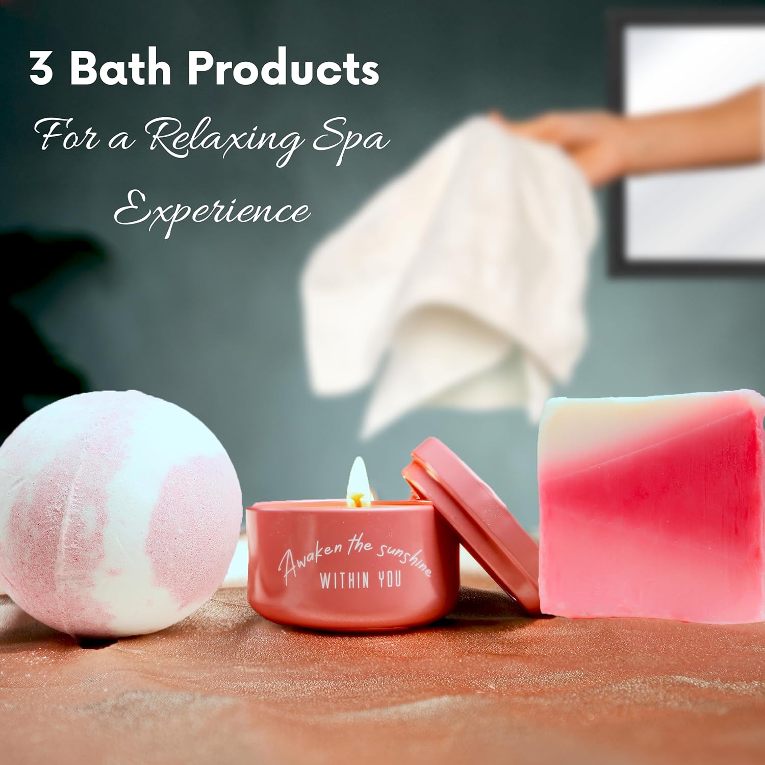 🛀 BATH PRODUCTS FOR RELAXING BATH EXPERIENCE: Dive deep into a relaxing bath experience with the glow and aroma of a scented candle, a handmade soap, and the bubblicious fizzy pops of a bath bomb!