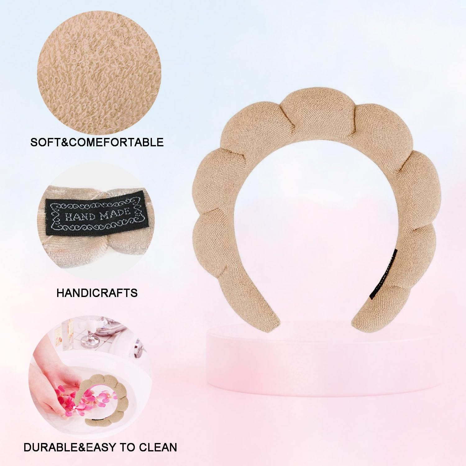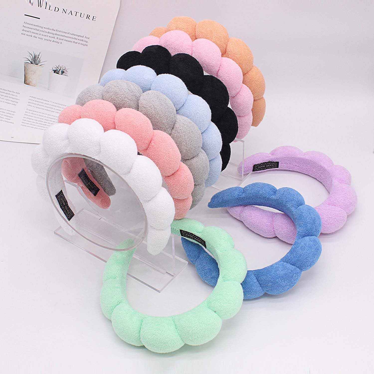 Spa Headband for Washing Face, Face Scrubber, Facial Exfoliator, Sponge Makeup Headband, Skincare Headbands for Makeup Removal, Terry Cloth Headband Bubble Soft Puffy Headband for Women Girl
