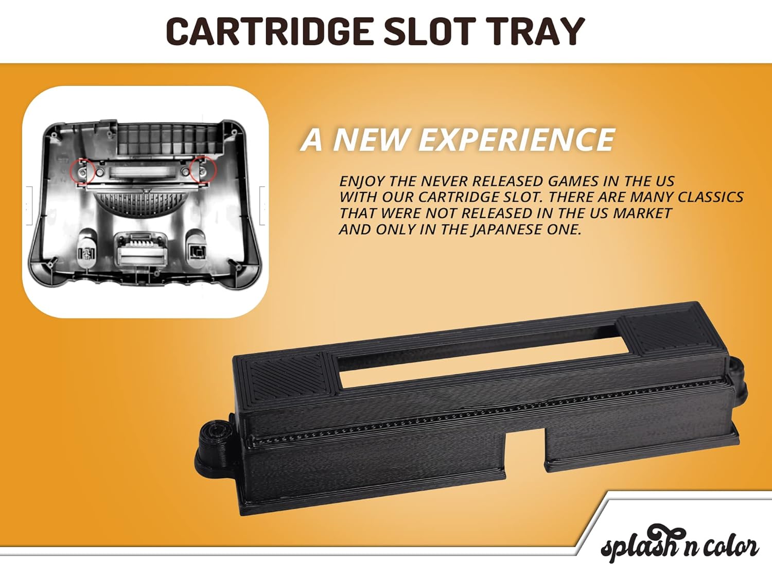 A NEW EXPERIENCE – Enjoy the never released games in the US with our cartridge slot. There are many classics that were not released in the US market and only in the Japanese one. With our cartridge slot you will be able to play the JAP games at the comfort of your home and have a brand new gaming experience.