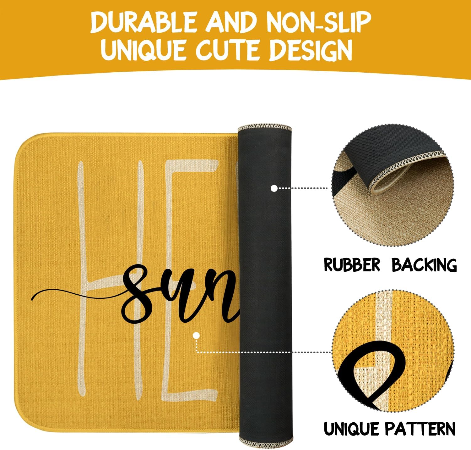 Spring Summer Farmhouse Kitchen Rugs and Mats Set of 2,Yellow Flowers Floral Hello Sunshine Kitchen Mat,Non Slip Washable Kitchen Floor Sink Mats Decorations for Home Kitchen 18″x48″+18″x30″