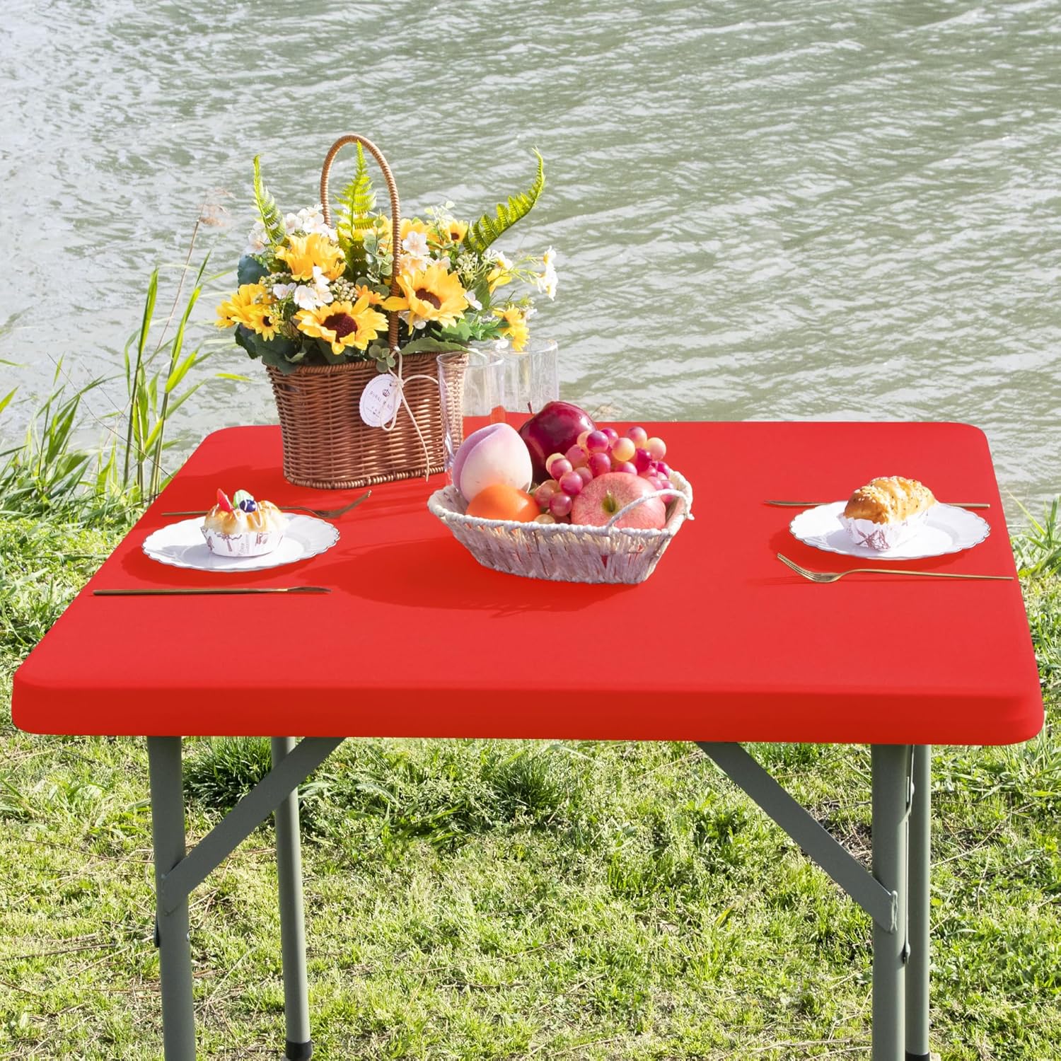 Square Fitted Table Cover Elastic Tablecloth Stretch Spandex Table Top Cover Table Topper Cap for Dining Kitchen Home Party Red 34X34 Inch