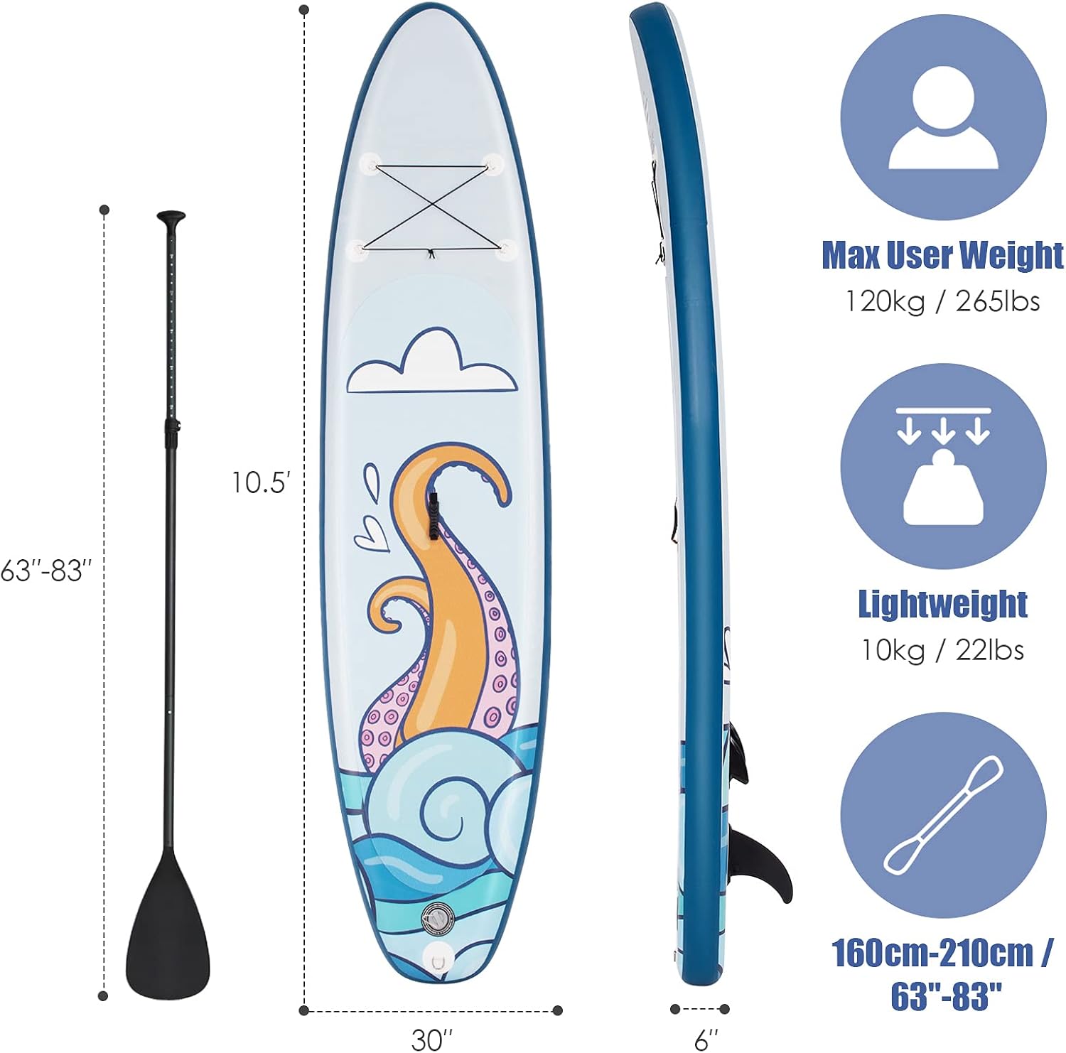Stand Up Paddle Board- 10’/10.5’/11’×30″×6″ SPORFIT Inflatable Paddleboard with Premium SUP Accessories & Backpack, Non-Slip Deck, Waterproof Bag, Leash, Paddle and Hand Pump for Youth & Adult