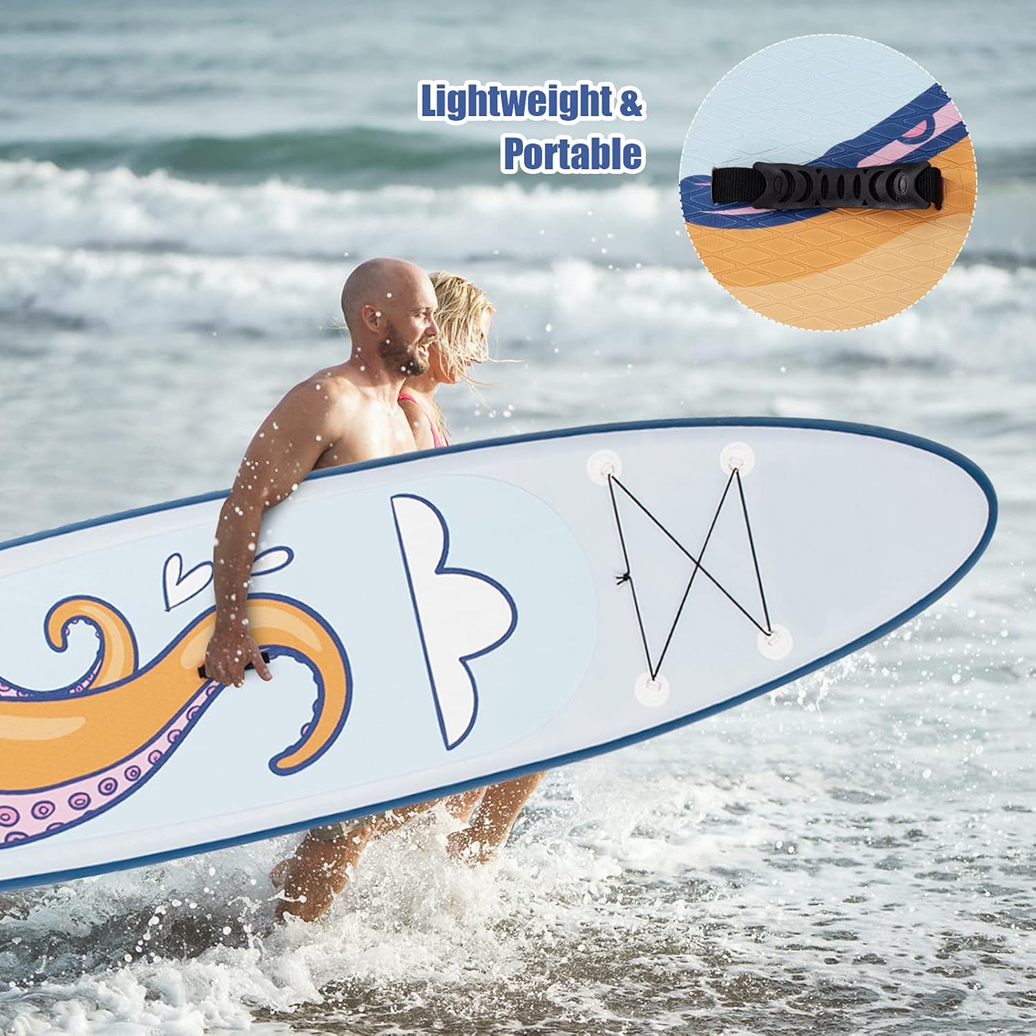 【🏄Super Lightweight and Easy to Carry】We offer the most durable lightweight surfboard on the market, weighing only 21 pounds, easy to carry, inflate or deflate <5 minutes, max PSI: 15. 100% suitable for travel, this unique inflatable surfboard is the first choice for those with a knack for adventure.