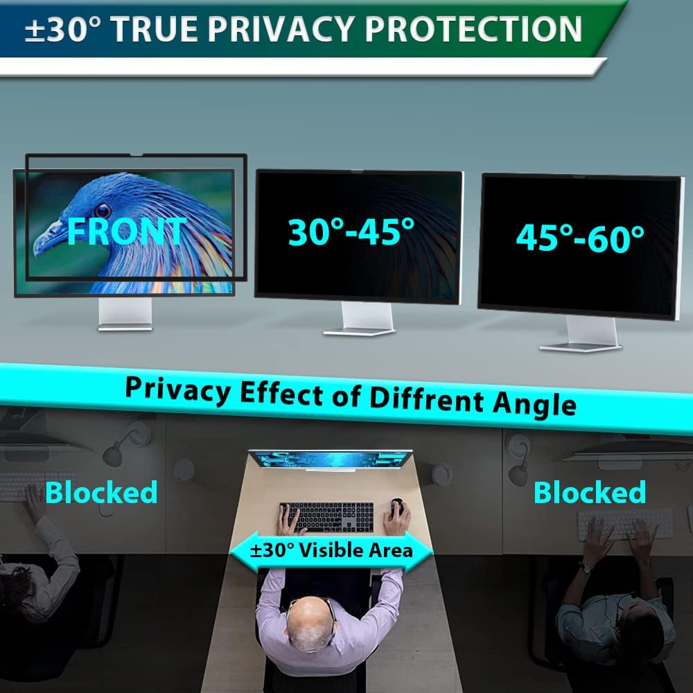 【 Enhanced Privacy – Dark Screen For Others 】- Clear view for you. This Studio 27 privacy screen is perfect for public and high traffic areas for data safe. It makes the screen appear dark when looking at it from an angle (the angle is about 30°- 60°), but bright and clear when looking directly at it. Applying the principles of blinds prevent peeping, simply to change the privacy angle from 30°to 60°degrees – Then you can easily adjust your monitor’s privacy protection level.