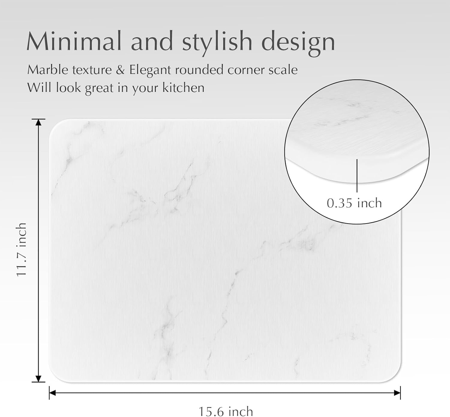 Stone Dish Drying Mat for Kitchen Counter – Ultra Absorbent Diatomaceous Earth Stone Mat, Quick Drying, Non-Slip, Heat Resistant, Eco-Friendly Dish Drying Stone(15.6×11.7 inch, White Marble)